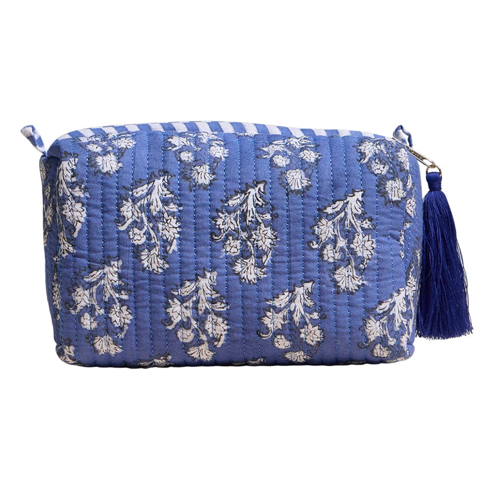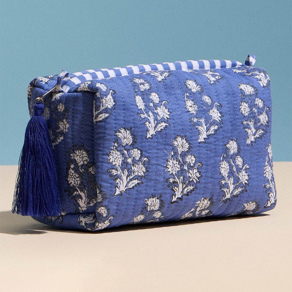 Details • Size : 6.5" X 4" X 3" • Zipper Closure • Quilted floral cosmetic pouch designed to organize makeup, skincare, and daily essentials with ease. Features a softly structured shape, secure zip closure, and decorative tassel accent. Compact yet spacious for travel, handbags, or vanity use, making it a stylish and practical storage solution or gift option.