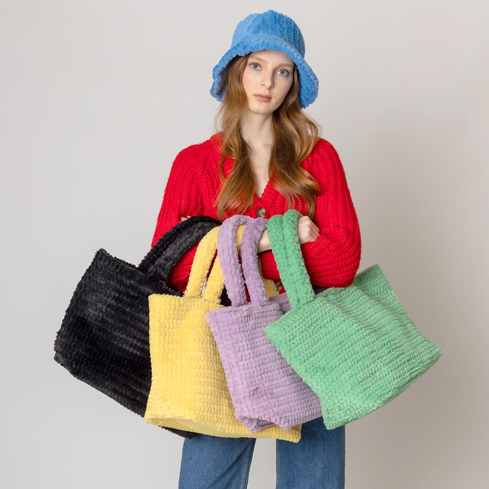 Chevron Patterned Faux Fur Pom Pom Knit Cap