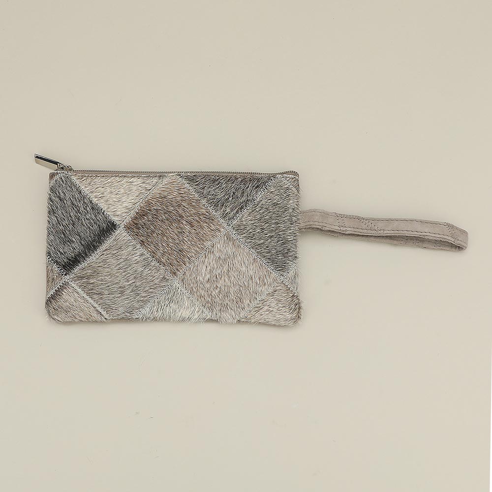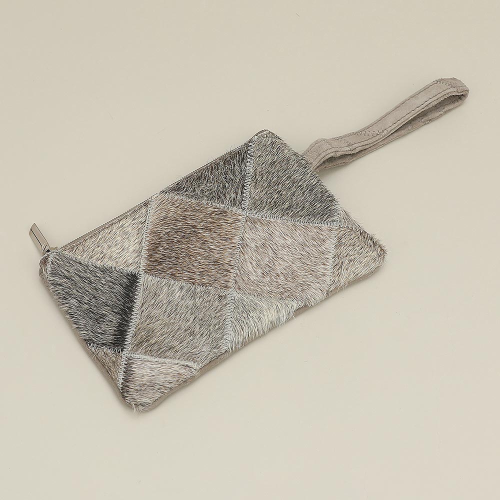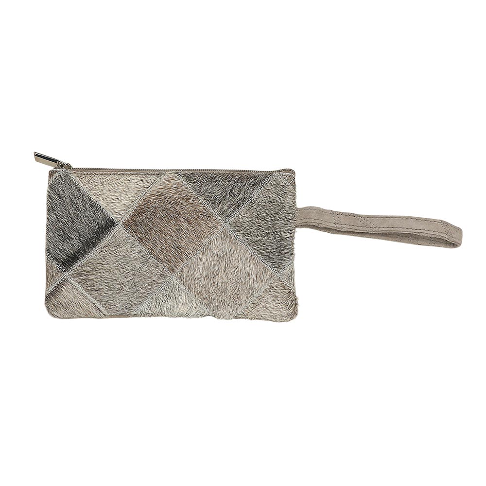 Details • Size : 8" X 5" • Wristlet Size : 5.5" L • Shell : 100% Leather • Inner Lining : 100% Cotton • Zipper Closure • This genuine leather calf hair patchwork wristlet clutch combines chic style and everyday function. Featuring a secure zipper closure with interior space for your phone, cards, keys, and earbuds, it’s the perfect lightweight grab-and-go accessory. Its neutral tones pair effortlessly with any outfit for casual days, coffee runs, and nights out. • Made In India