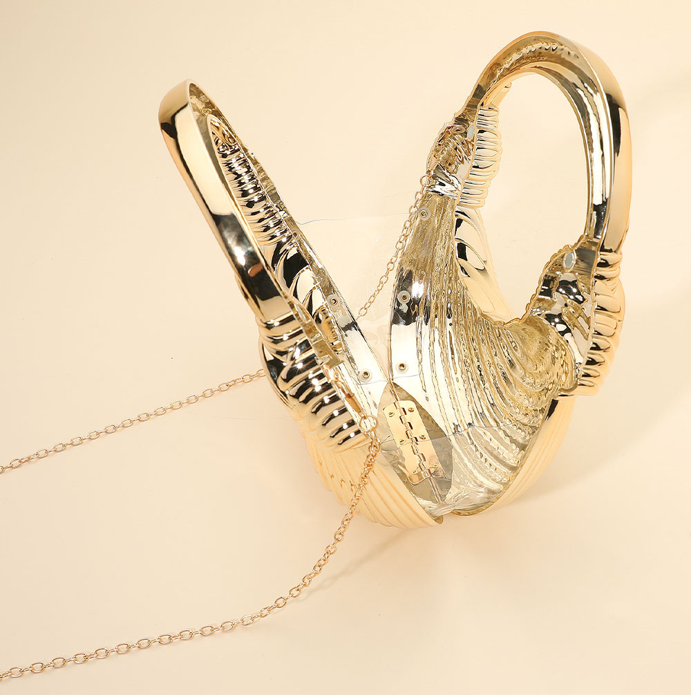 Hard Shell Metallic Sculpted Loop Top Handle Handbag