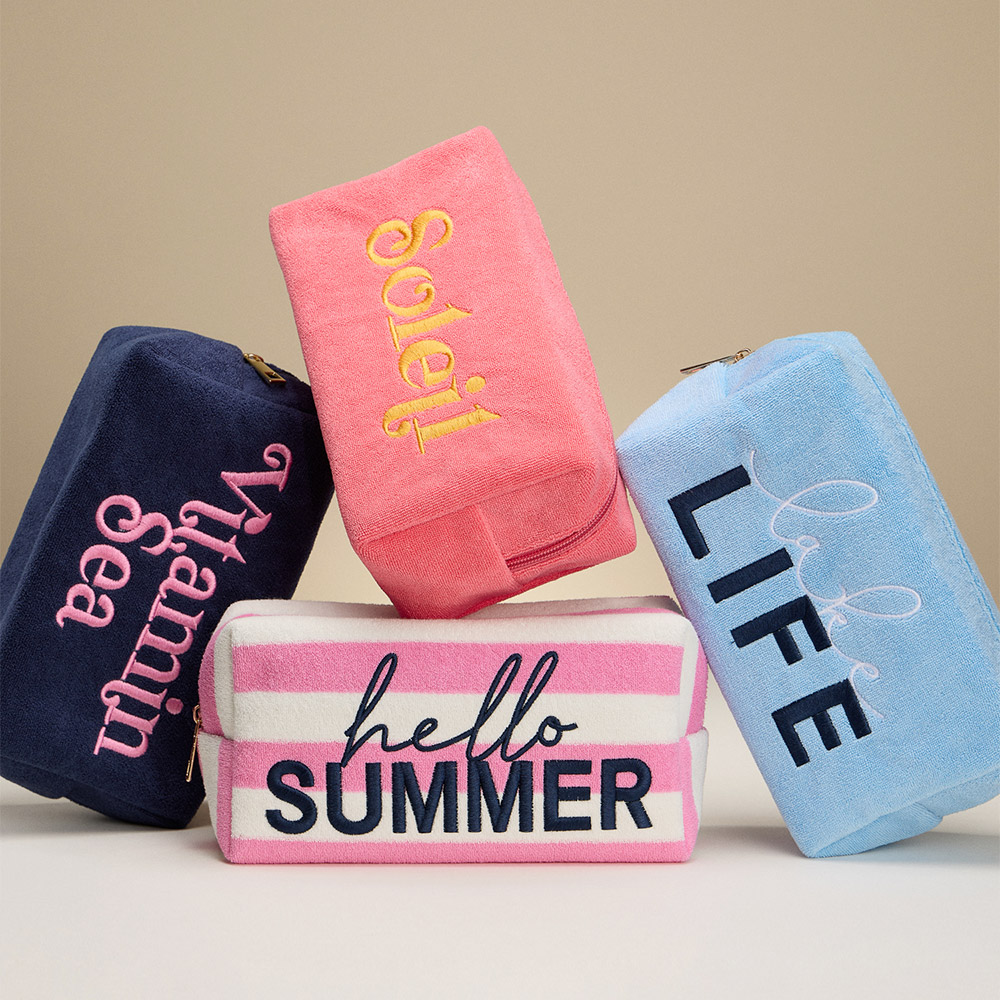 HELLO SUMMER Message Embroidered Cosmetic Pouch Bag / Organizer