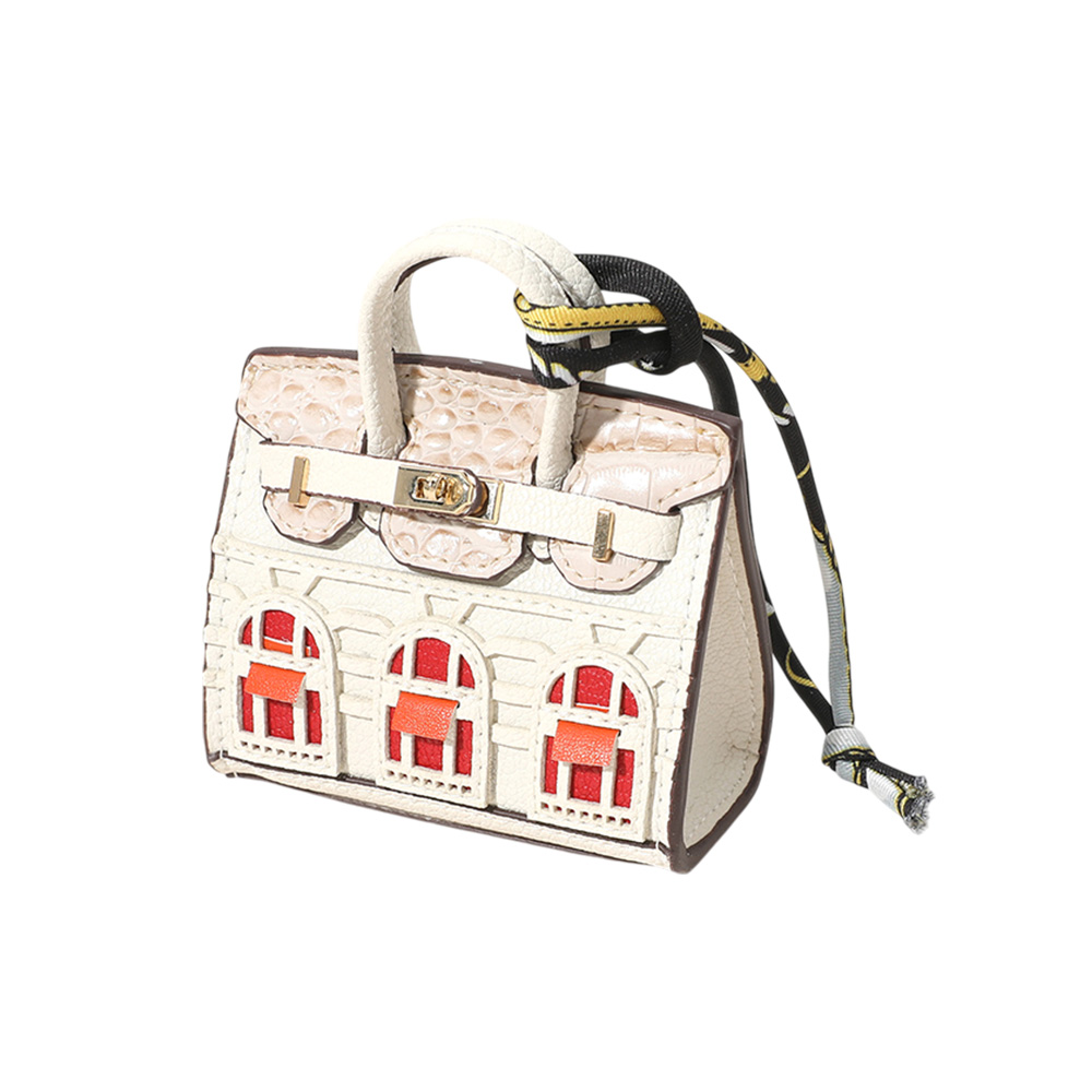 Details • Size : 3" X 2.6" X 1.2" • Strap Size : 7" L / Detachable, Fabric scarf-style strap for easy attachment • Miniature handbag-style lock closure • Decorative metal rivets and clasp hardware detail • fits Earphone, Earbuds, Small Accessory • Can be used as a keychain, bag charm, or collectible accessory • Material : 100% Polyurethane