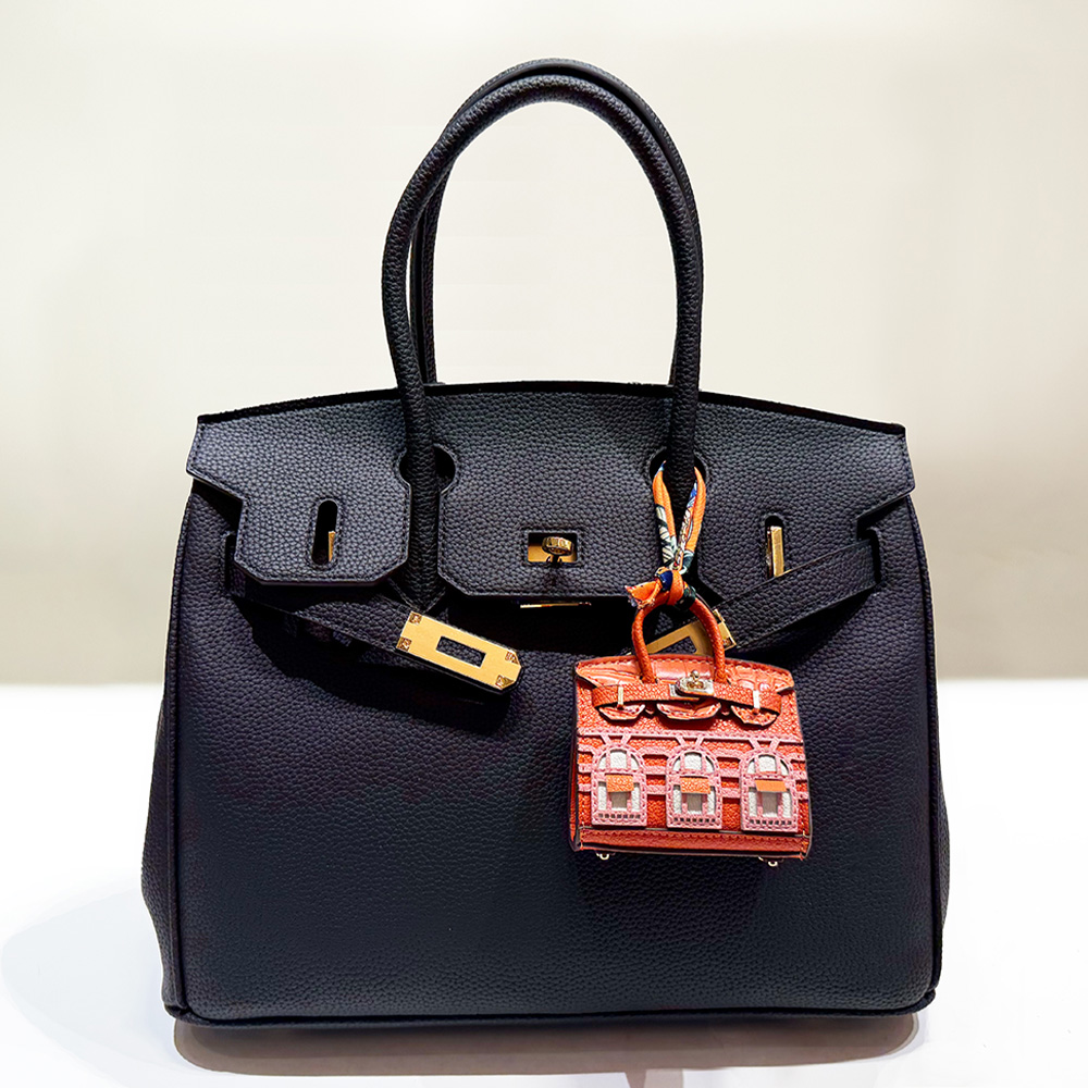 • Miniature handbag-style lock closure