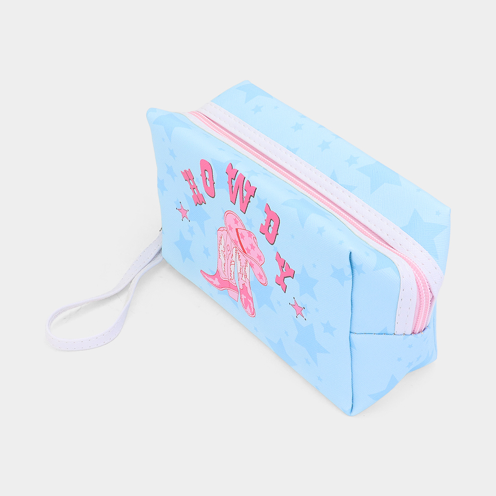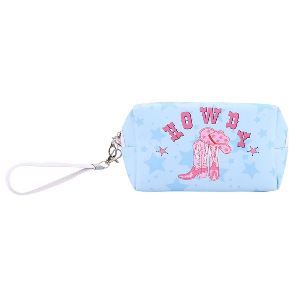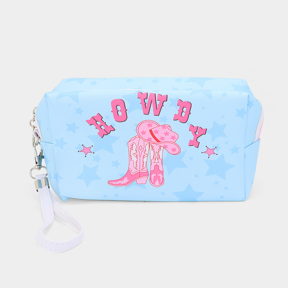 HOWDY Message Cowboy Boots Printed Pouch Bag with Wristlet