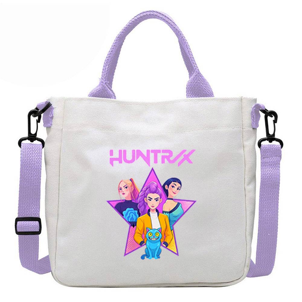 Details • Size : 9.5" X 9" X 2.25" • Top Handle Size : 3.5" L • Strap Size : 41" L / Detachable, Adjustable • Magnetic Closure • Material : 100% Polyester • Stylish tote bag featuring bold HUNTR/X character artwork with a practical carry design ideal for daily errands, shopping, events, conventions, or casual outings. Lightweight and spacious enough for essentials, making it a versatile accessory for fans and everyday use.