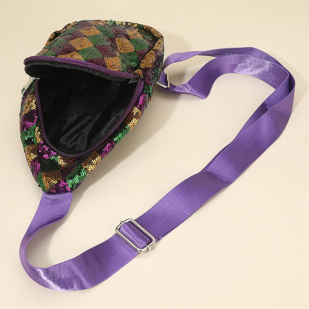 Details • Size : 6.25" X 11.25" X 3.2" • Strap Size : Adjustable • Zipper Closure • Eye catching diamond sequin sling backpack designed for festivals, themed events, travel, and everyday hands free wear. Features a secure zipper closure, adjustable strap, and compact interior ideal for carrying essentials. A strong boutique accessory for seasonal promotions, party collections, and customers seeking statement style with practical functionality.