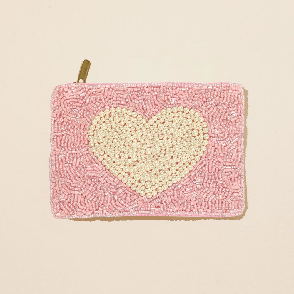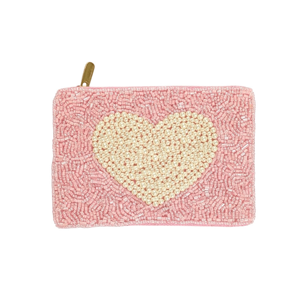 Details • Size : 5" X 3.75" • No Inside Pocket • Beads On Front Only • Zipper Closure • Lovely beaded pouch featuring a pearl-accented heart centerpiece for a sweet, feminine touch. Perfect for storing small essentials, gifting, themed events or adding charming detail to everyday accessories. A cute, expressive piece that brings soft romantic style. • Made In India