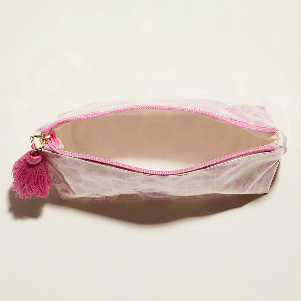 Details • Size : 9.5" X 5.5" • Zipper Closure • Compact zip pouch designed for organizing makeup, toiletries, and daily essentials with ease. Features a secure zipper closure, roomy interior for travel or everyday use, and a decorative tassel accent for added style. Ideal for handbags, luggage, gym bags, or quick organization on the go.