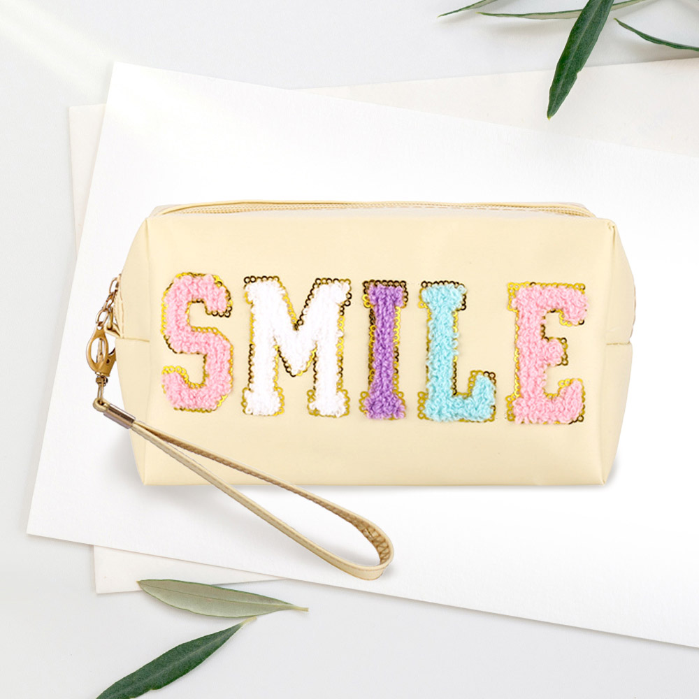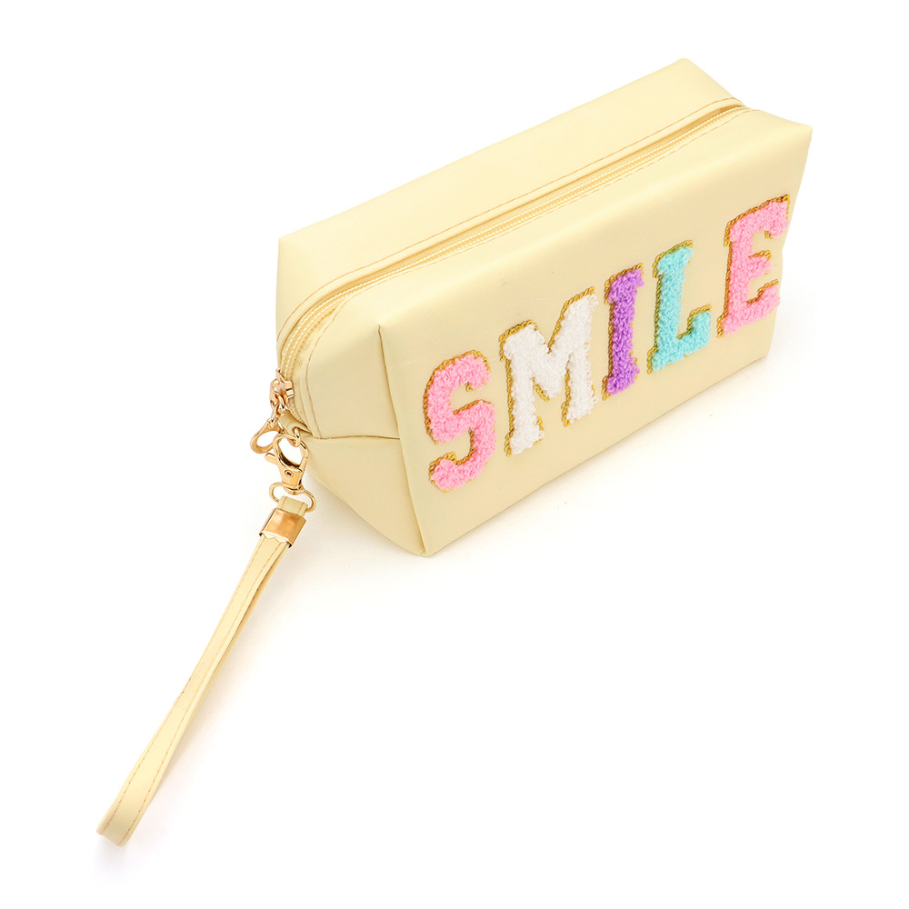 Smile Sequin Chenille Message Pouch Bag