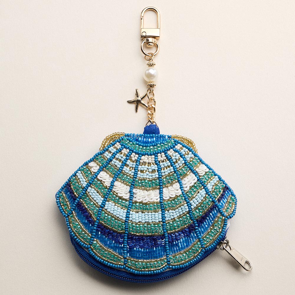 Details • Size : 4.5" X 3.5" (appx), 3.25" L • No Inside Pocket • Beads On Front Only • Bag Only (items are not included) • Zipper Closure • Decorative shell design zipper pouch with keychain clip, ideal for coins, earbuds, cash, or small essentials. Compact and lightweight for handbags or backpacks, perfect for gift shops, beach themed assortments, summer displays, and everyday on the go organization. • Made In India