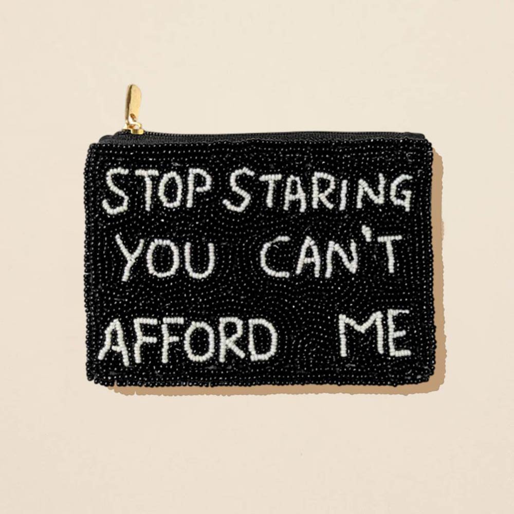 STOP STARING Message Seed Beaded Mini Pouch Bag