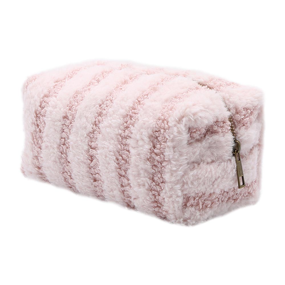 • Keep essentials organized with this soft plush striped zipper pouch. Featuring a cozy textured design and secure zip closure, it’s ideal for cosmetics, stationery, or travel accessories. A stylish and practical pouch for everyday use or gifting.