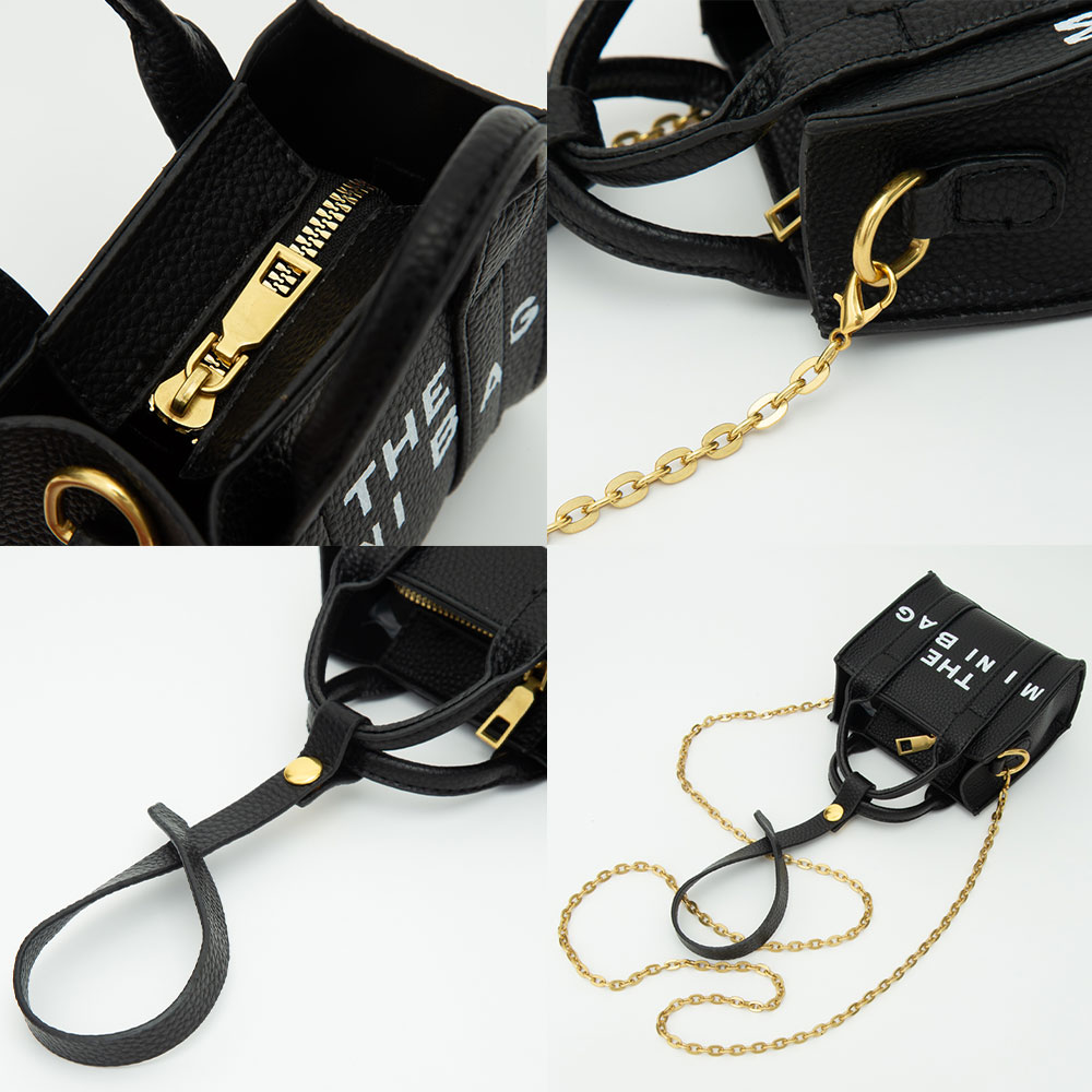 • This compact mini bag features a structured silhouette, standout text design, and a chic chain strap for versatile styling. Ideal for essentials, it combines fashion-forward flair with everyday functionality, making it perfect for casual outings or statement looks.