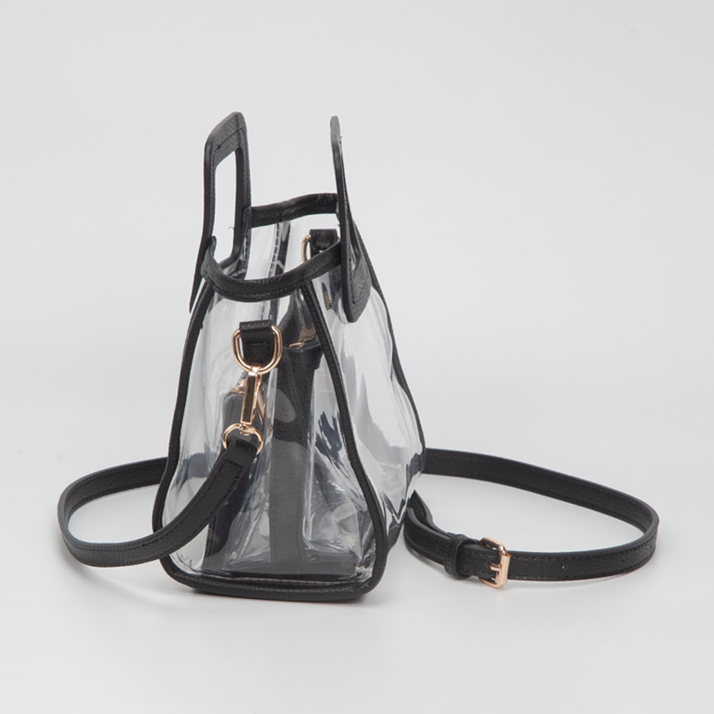 • Stylish clear 3-piece bag set featuring a structured top-handle tote, detachable crossbody insert and matching zip pouch. Ideal for stadium events and everyday organization, offering convenient storage, lightweight design and versatile carrying options for on-the-go use.