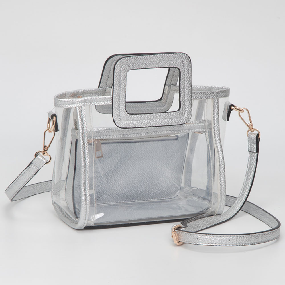 • Stylish clear 3-piece bag set featuring a structured top-handle tote, detachable crossbody insert and matching zip pouch. Ideal for stadium events and everyday organization, offering convenient storage, lightweight design and versatile carrying options for on-the-go use.