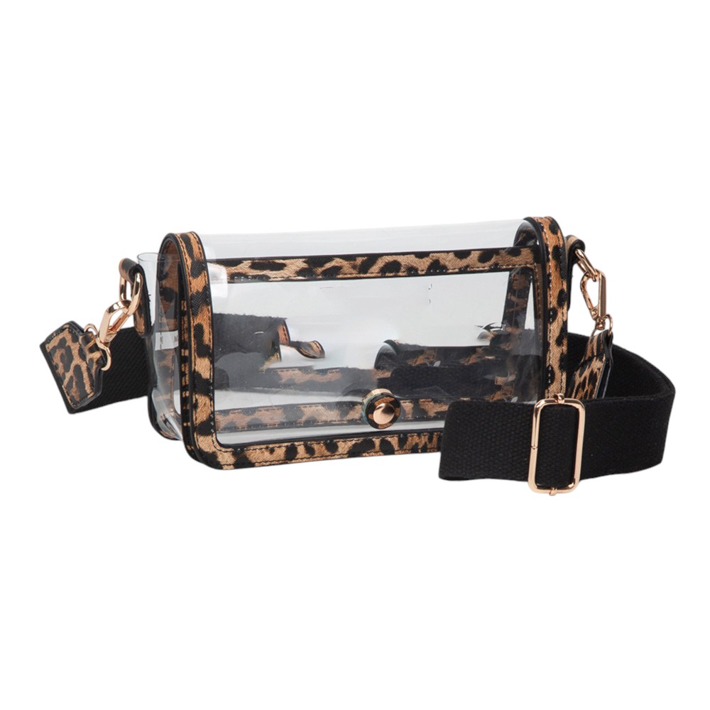 • Stay stylish and compliant with this clear stadium-approved crossbody bag, featuring black trim, secure snap closure, and an adjustable shoulder strap for comfort. Perfect for concerts, sporting events, festivals, and everyday use, offering convenience while meeting event regulations with ease.