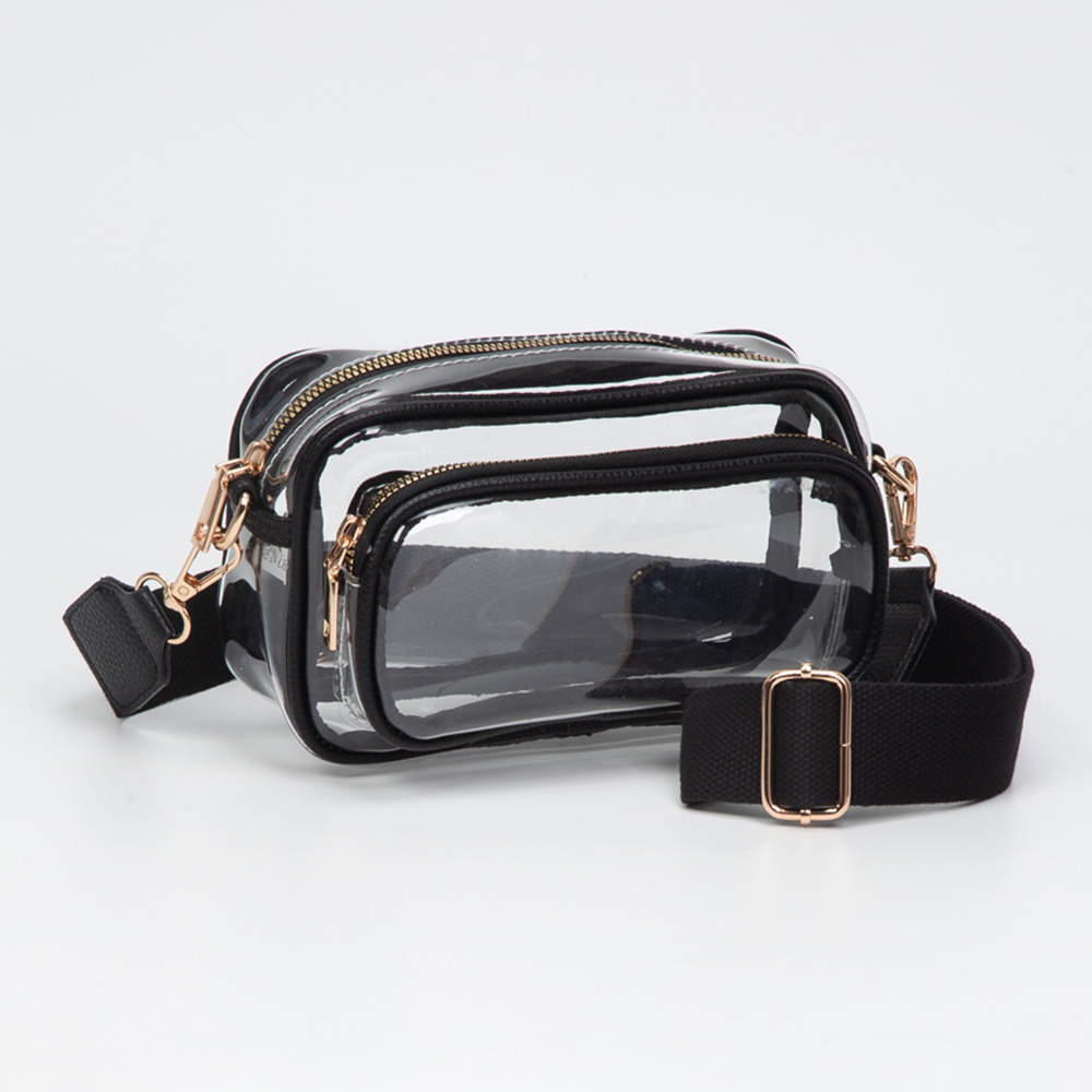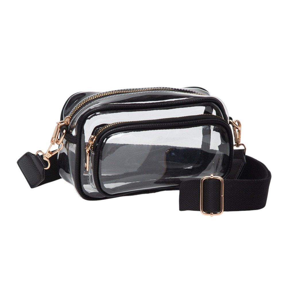 • Be game day ready with this clear stadium-approved crossbody bag, featuring white trim, dual zip compartments, and an adjustable strap for hands-free comfort. Perfect for concerts, sporting events, festivals, and venues with clear bag policies, offering style, security, and convenience on the go.