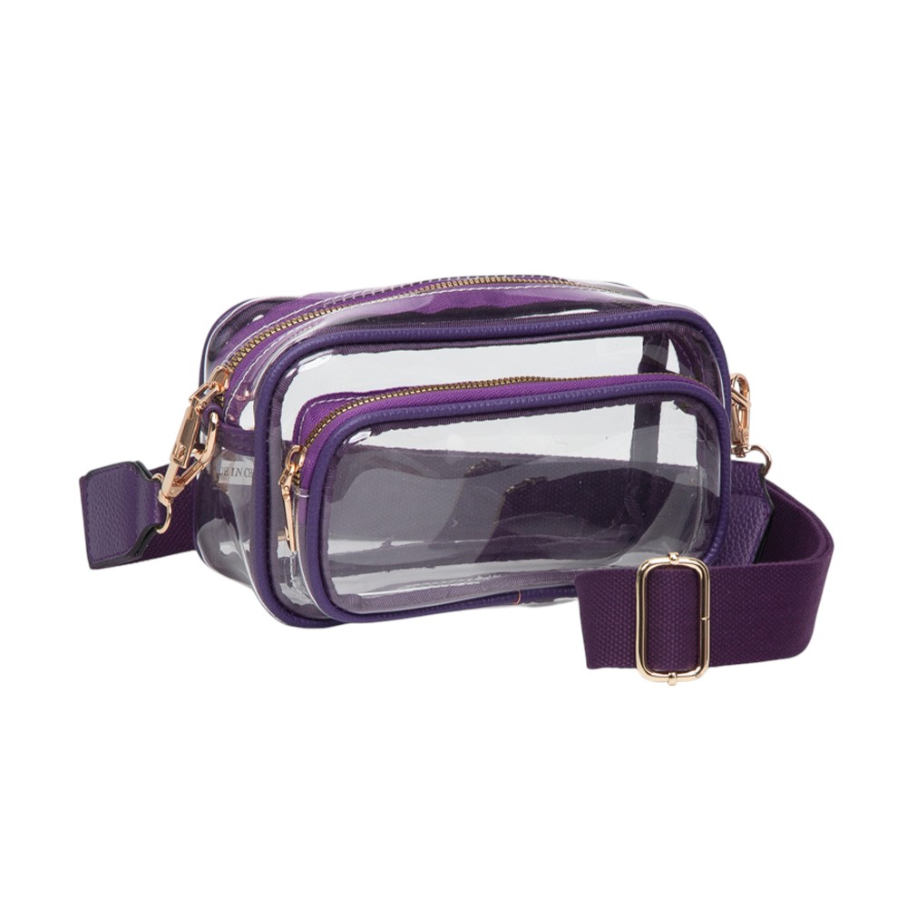 • Be game day ready with this clear stadium-approved crossbody bag, featuring white trim, dual zip compartments, and an adjustable strap for hands-free comfort. Perfect for concerts, sporting events, festivals, and venues with clear bag policies, offering style, security, and convenience on the go.