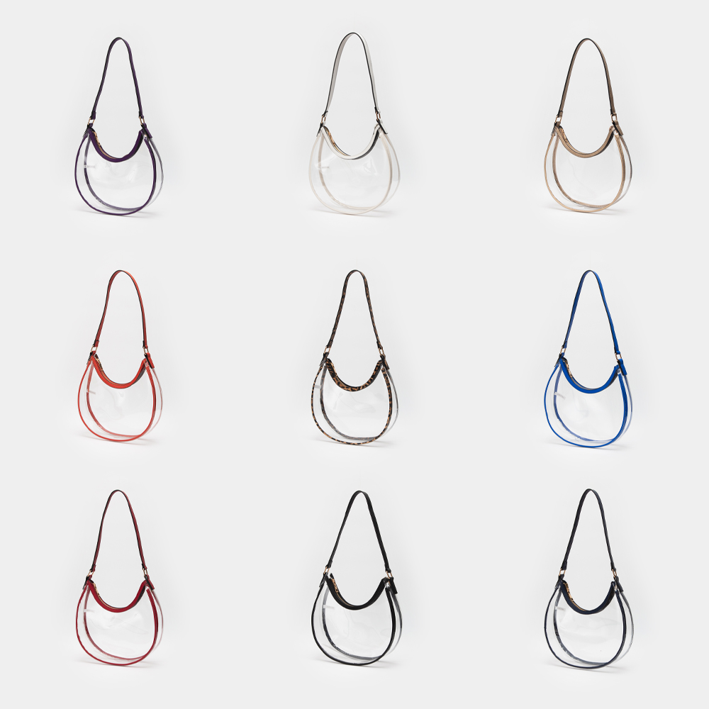 • Modern and versatile, this clear half-moon shoulder bag features a transparent body with sleek trim and a curved silhouette. Designed with a single strap for easy carrying, it’s ideal for events, concerts, or everyday use where clear bags are required, combining fashion-forward style with practicality.