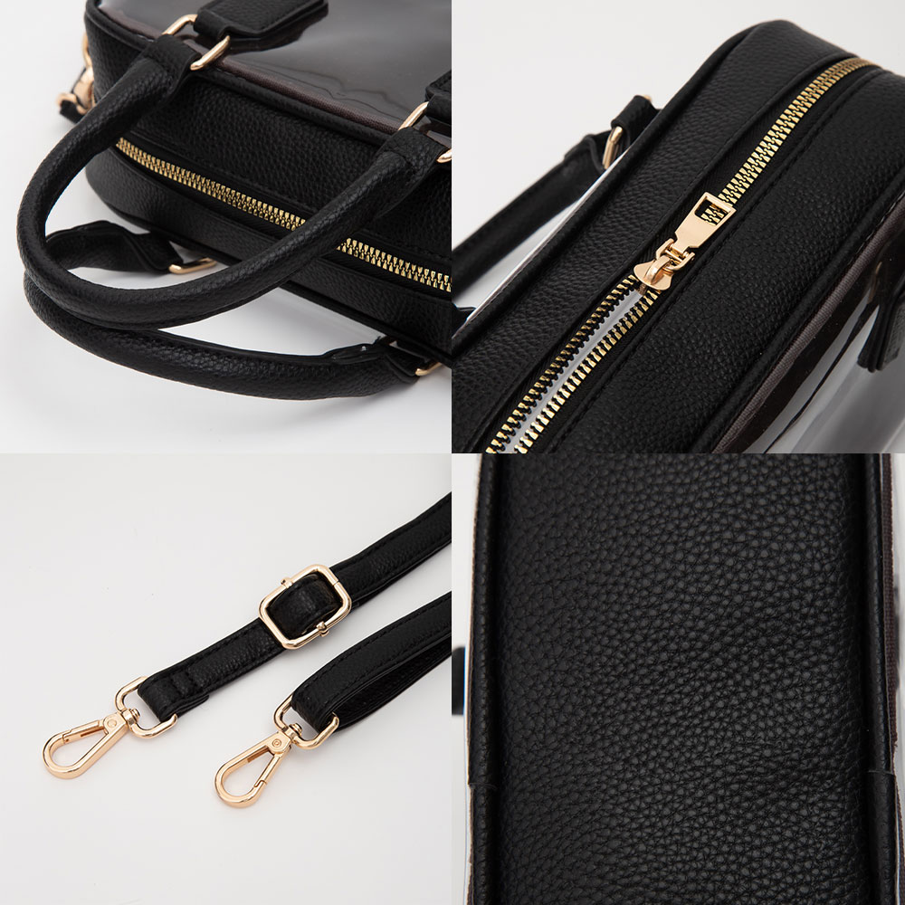 • Modern clear structured handbag featuring sturdy dual handles, an adjustable shoulder strap, and secure zip closure. Perfect for events, travel, or everyday use where style meets practicality with a transparent, easy-to-clean design.