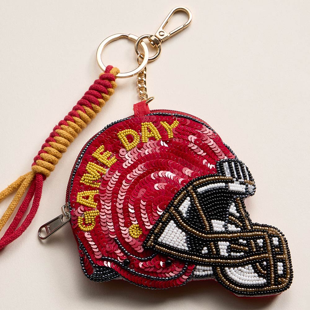 • Eye-catching helmet-shaped keychain pouch designed with detailed beadwork and zip closure for small essentials. Perfect for game day displays, sports-themed collections, gifting, and impulse buys, this compact accessory adds playful personality while offering practical storage on the go.