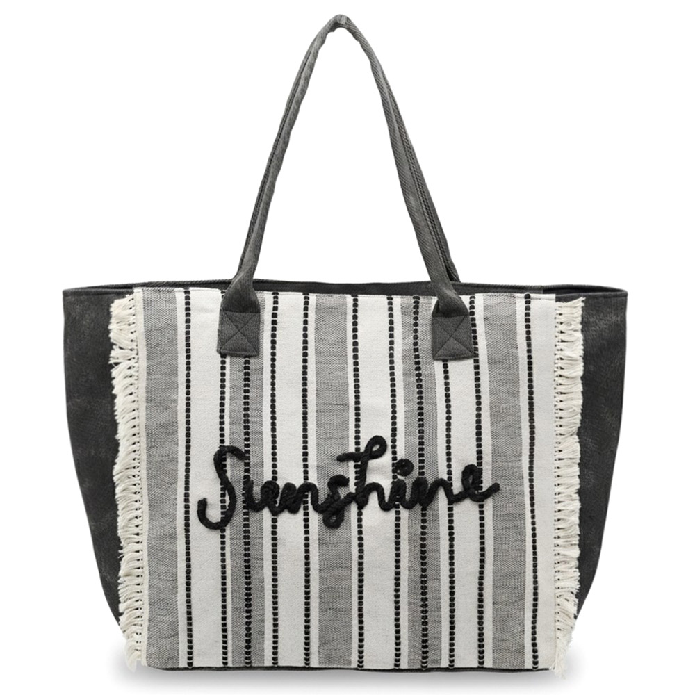 Vintage SUNSHINE Message Stripe Fringe Tote Bag