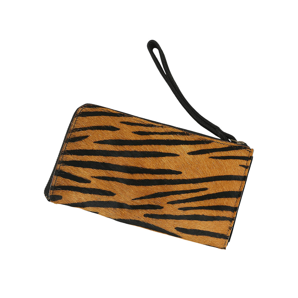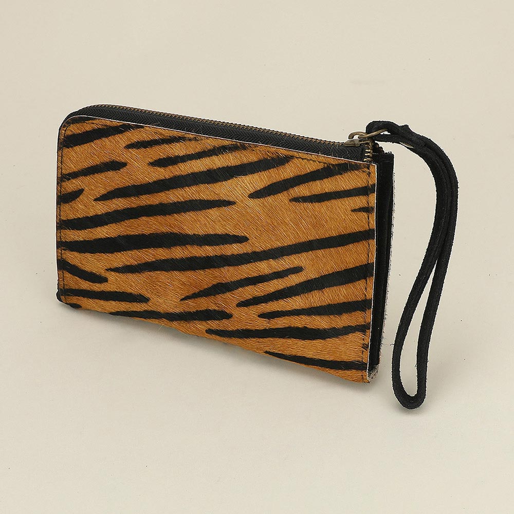 Genuine Leather Hair-On Tiger Pattern Wallet with Wristlet