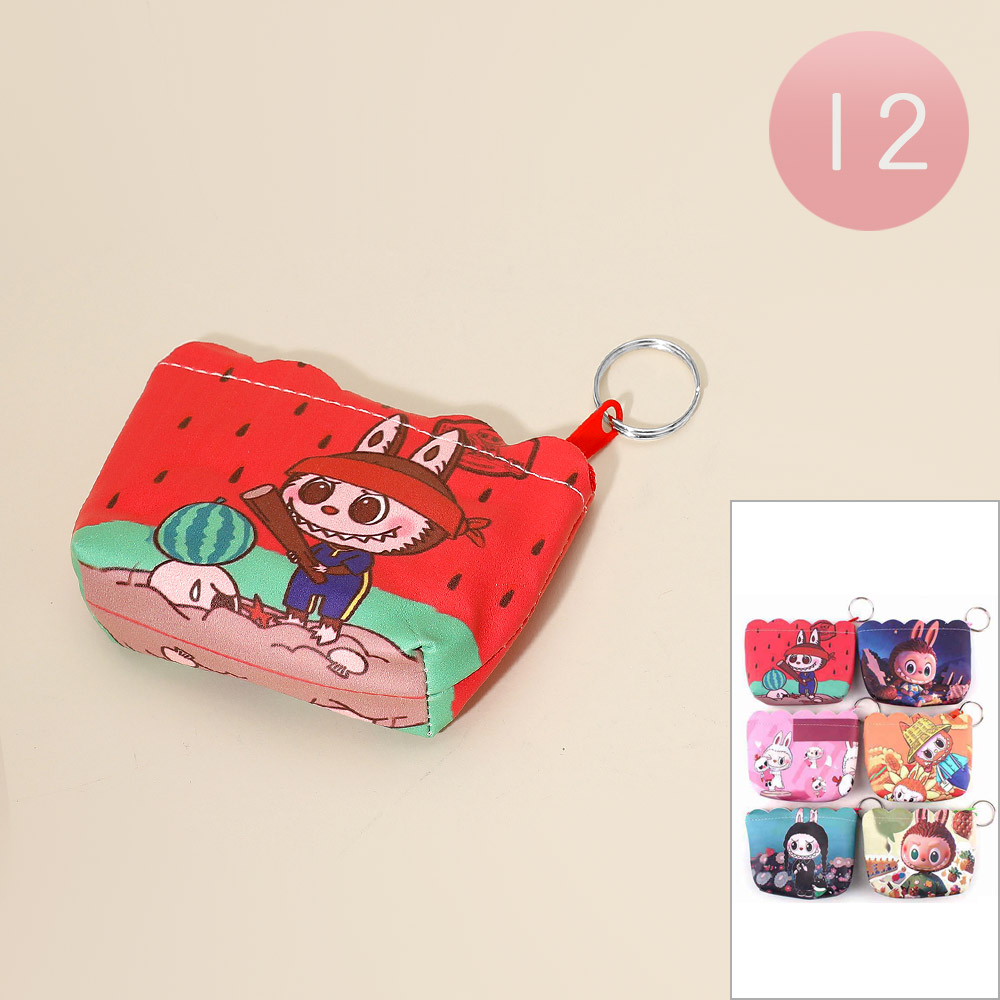 Details • Size : 4.5" X 3.75" • Zipper Closure • Adorable monster bunny character keychain pouch featuring a fun cartoon print, compact zipper storage, and attached keyring for easy carrying. Perfect for coins, small items, backpacks, or gifting. Lightweight mini accessory bag designed for everyday convenience and playful style.