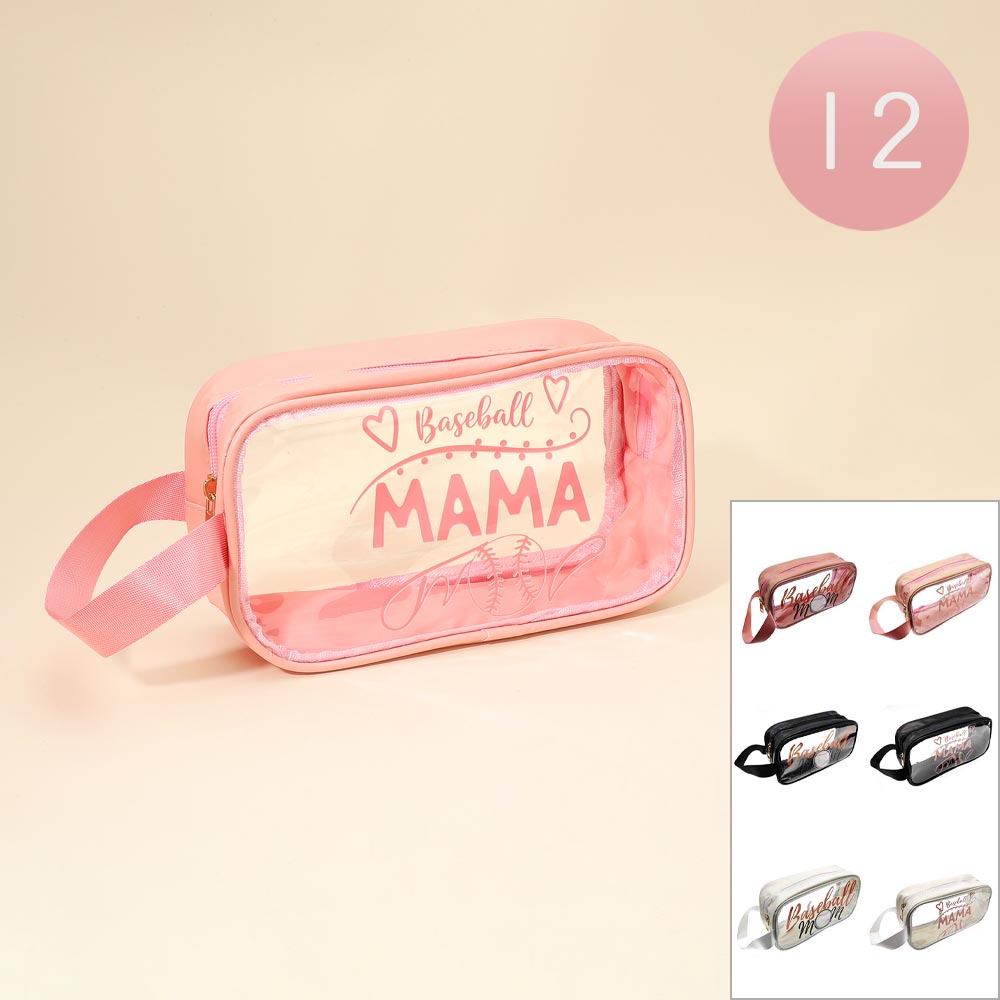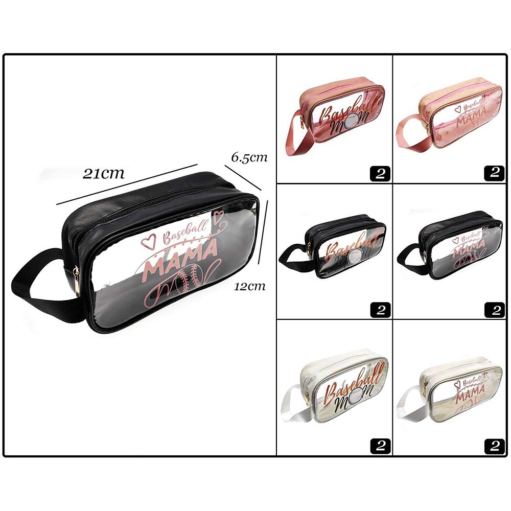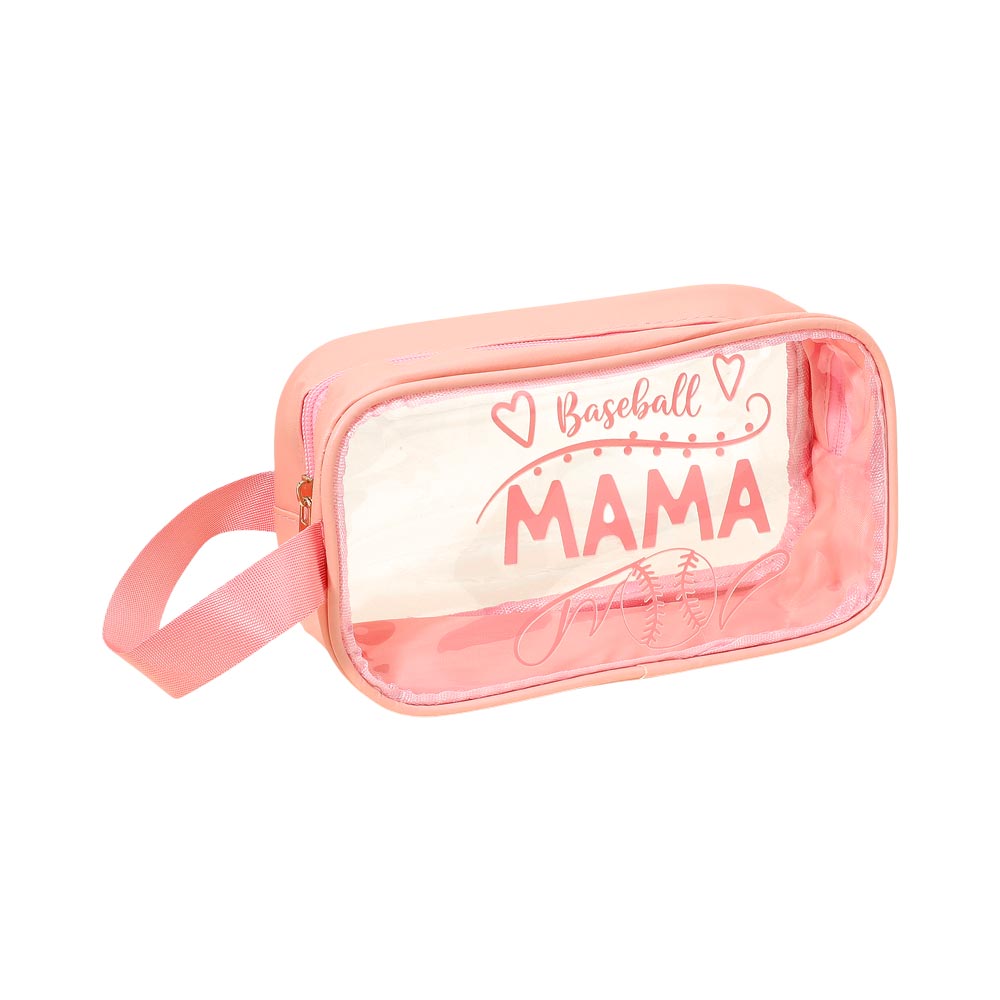 Details • Size : 8.25" X 4.75" X 2.5" • Handle Size : 4" L • Zipper Closure • A chic clear organizer bag with “Baseball Mama” design, perfect for makeup, toiletries, and daily essentials. Compact yet roomy with an easy-carry handle and wipe-clean surface, ideal for travel, gym visits, game days, or thoughtful gifting.