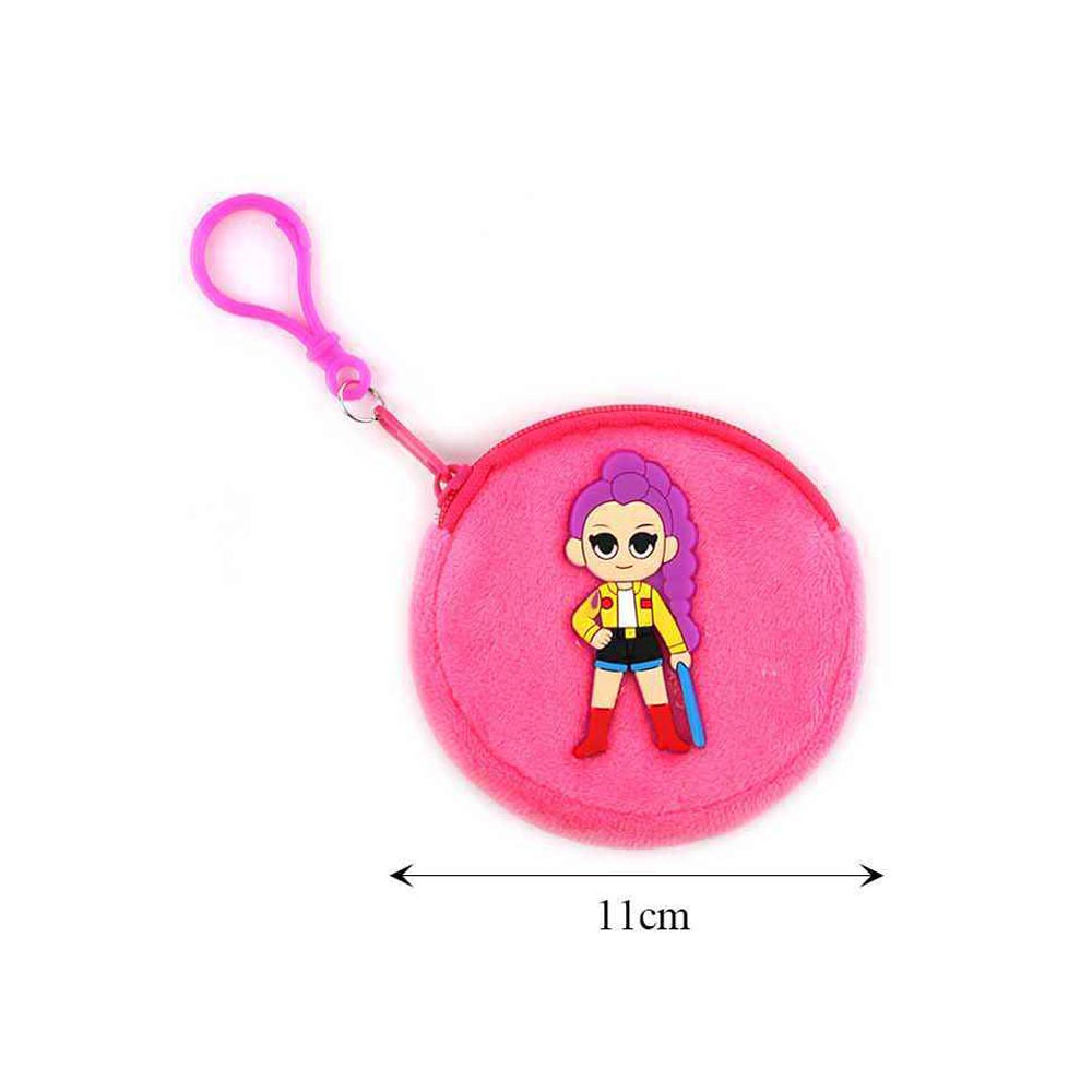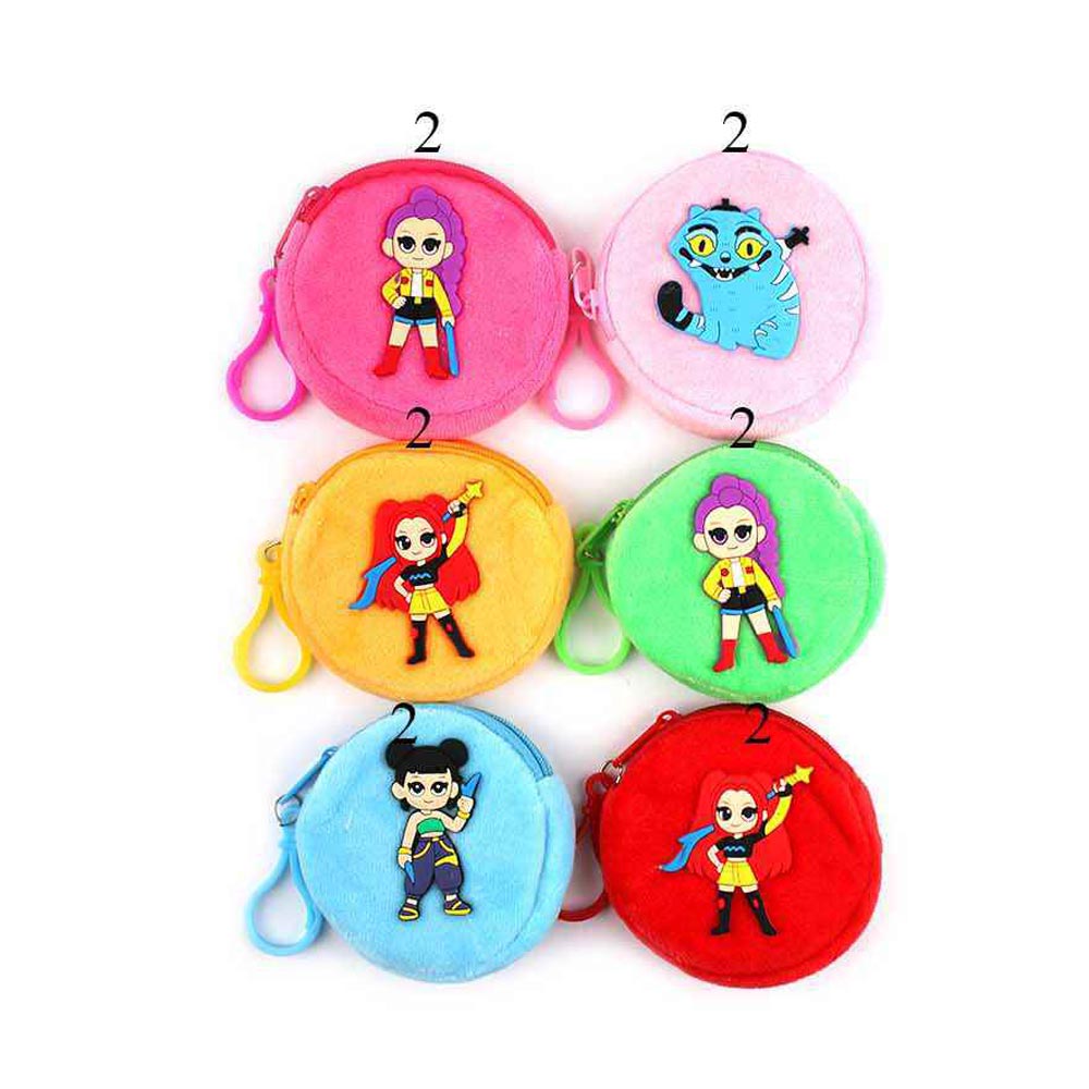 Details • Size : 3.5" X 3.5", 6" L • Zipper Closure • Playful plush kpop demon hunter character coin pouch designed with a compact zip closure for storing coins, earbuds, or small essentials. Includes an attached keychain strap for easy carrying on bags, backpacks, or keys, making it a fun, practical, and gift-ready accessory for everyday use.