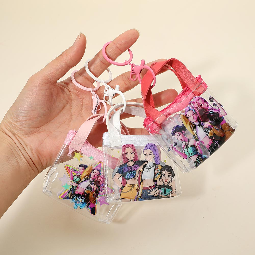 12PCS - Kpop Demon Hunters HUNTRIX Transparent Mini Tote Keychain Bag Charm