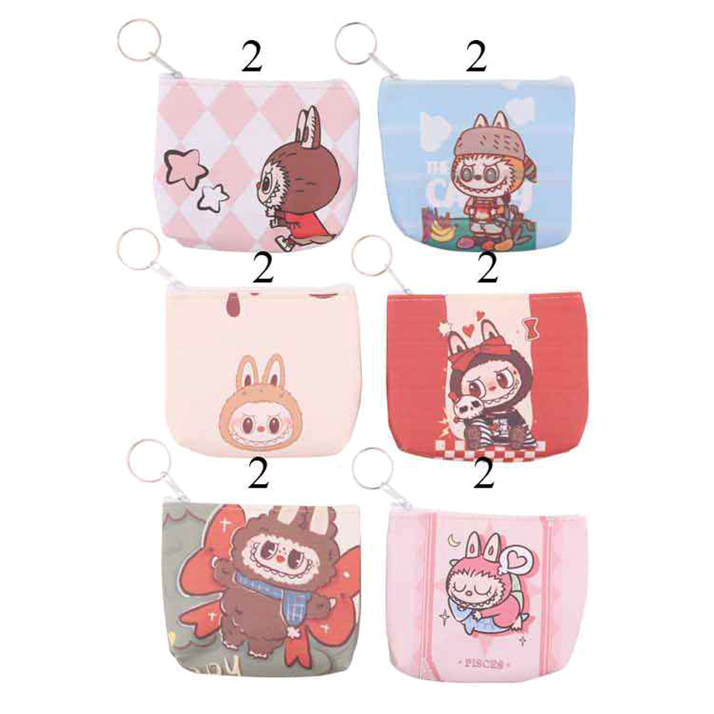 12PCS - Monster Bunny Character Printed Mini Keychain Coin Purse Bags