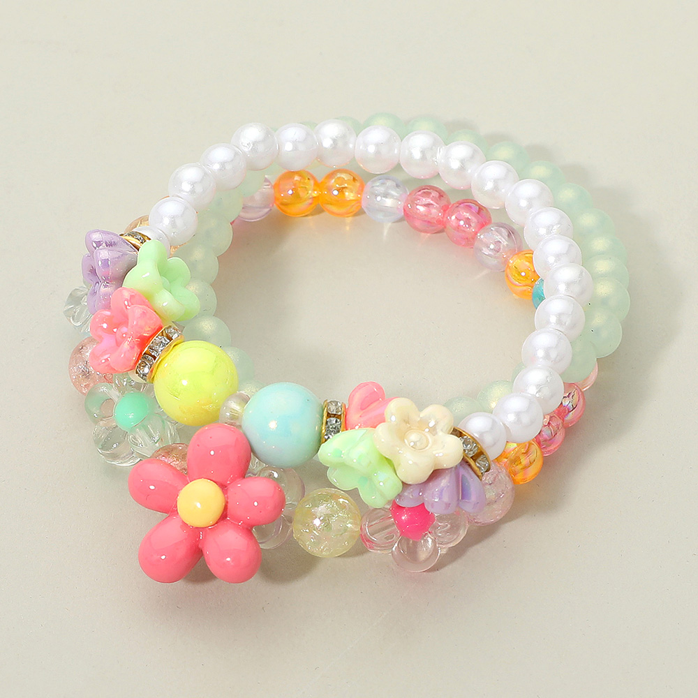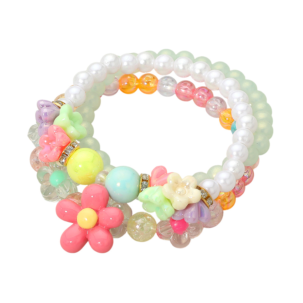 Details • Size : 1.8" H • Stretchable • Charming kids’ bracelet set featuring a flower charm with colorful beads and fun designs. Stretchy and comfortable for little wrists, this 12-piece pack is ideal for gifting, party favors, or daily wear, adding a touch of playful style and cheerful fun to children’s jewelry collections.