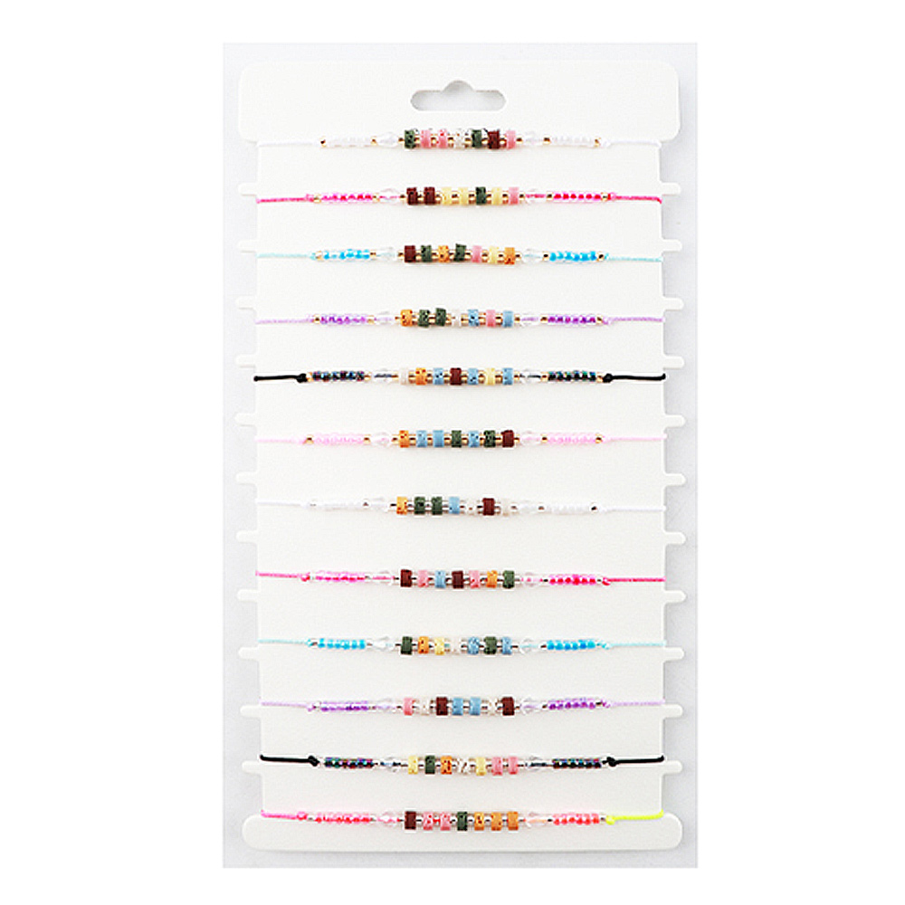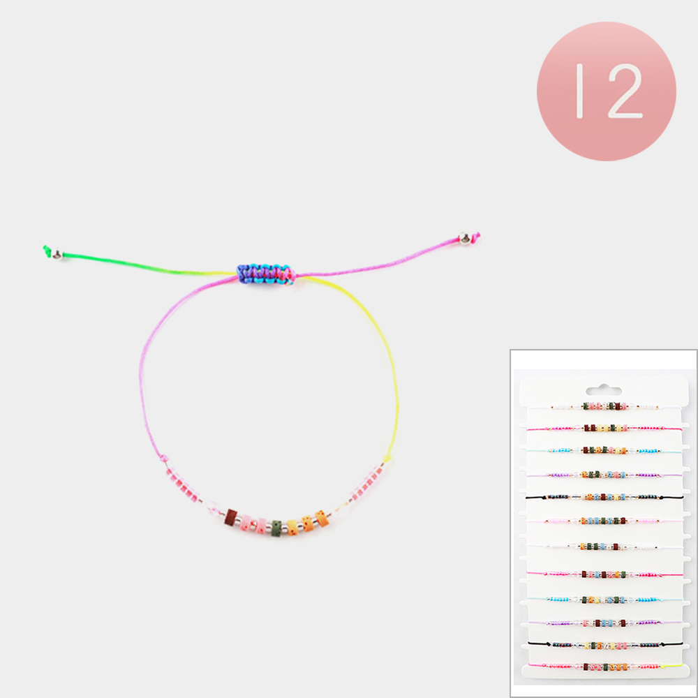 12PCS - Beaded Adjustable Pull Tie Cinch Bracelets