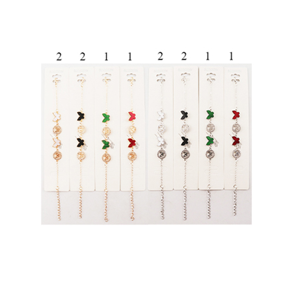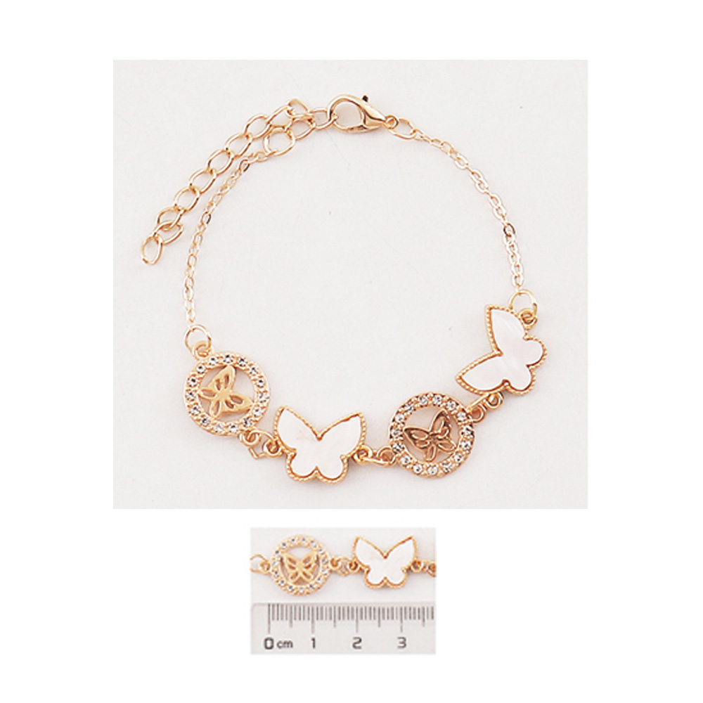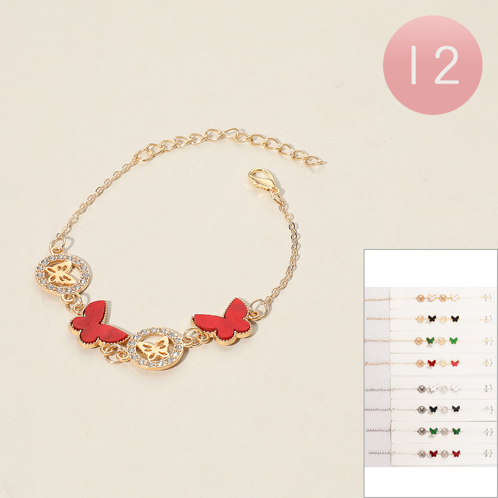 12PCS - Enamel Stone Paved Butterfly Link Bracelets