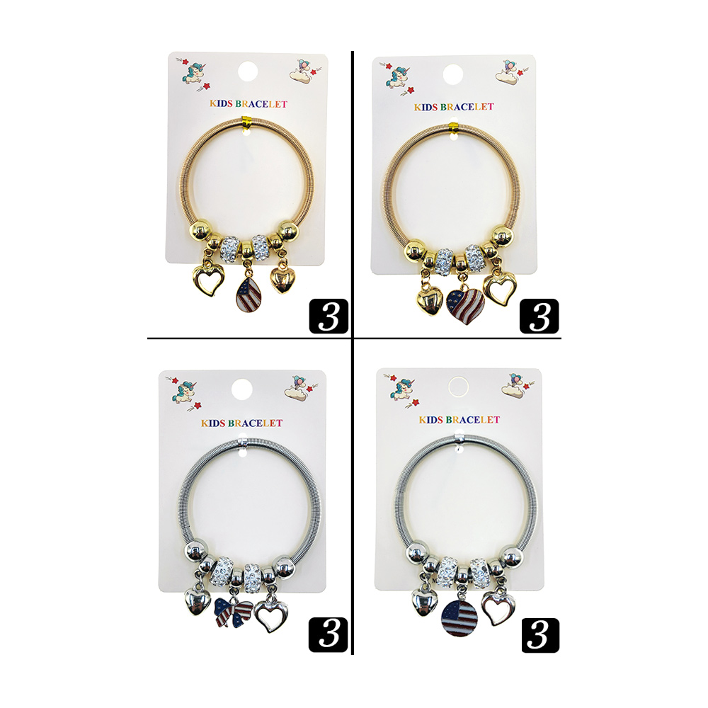 12PCS - Kids Enamel American USA Flag Charm Beaded Stretch Bracelets