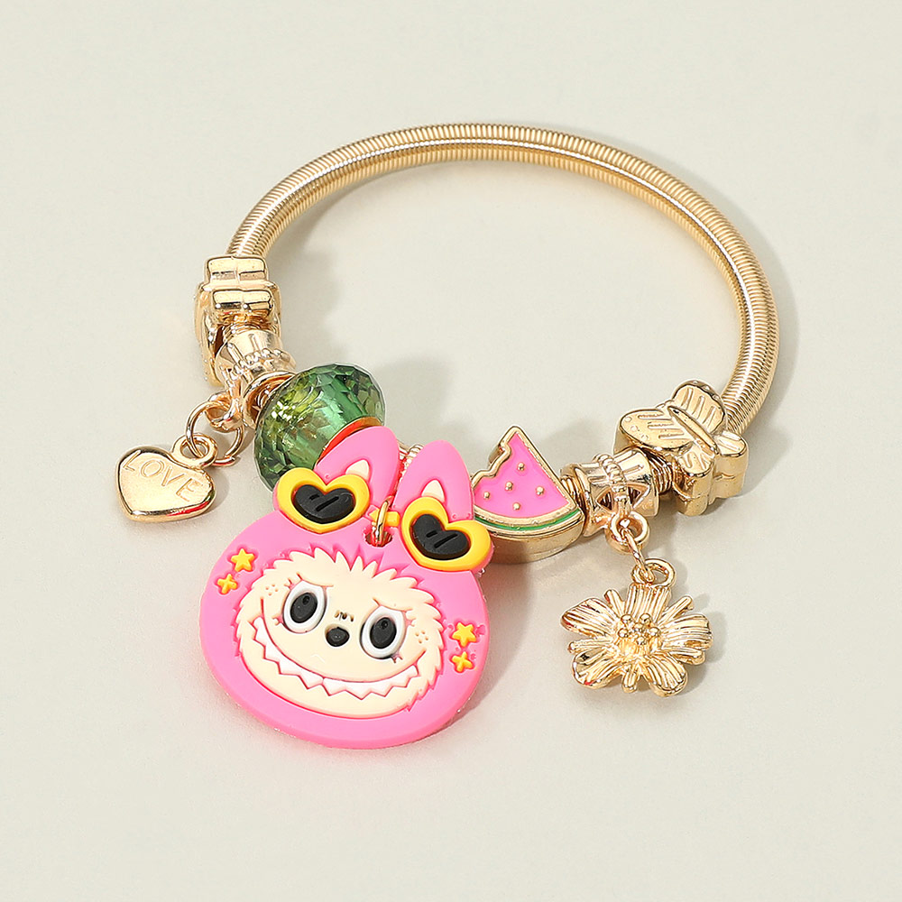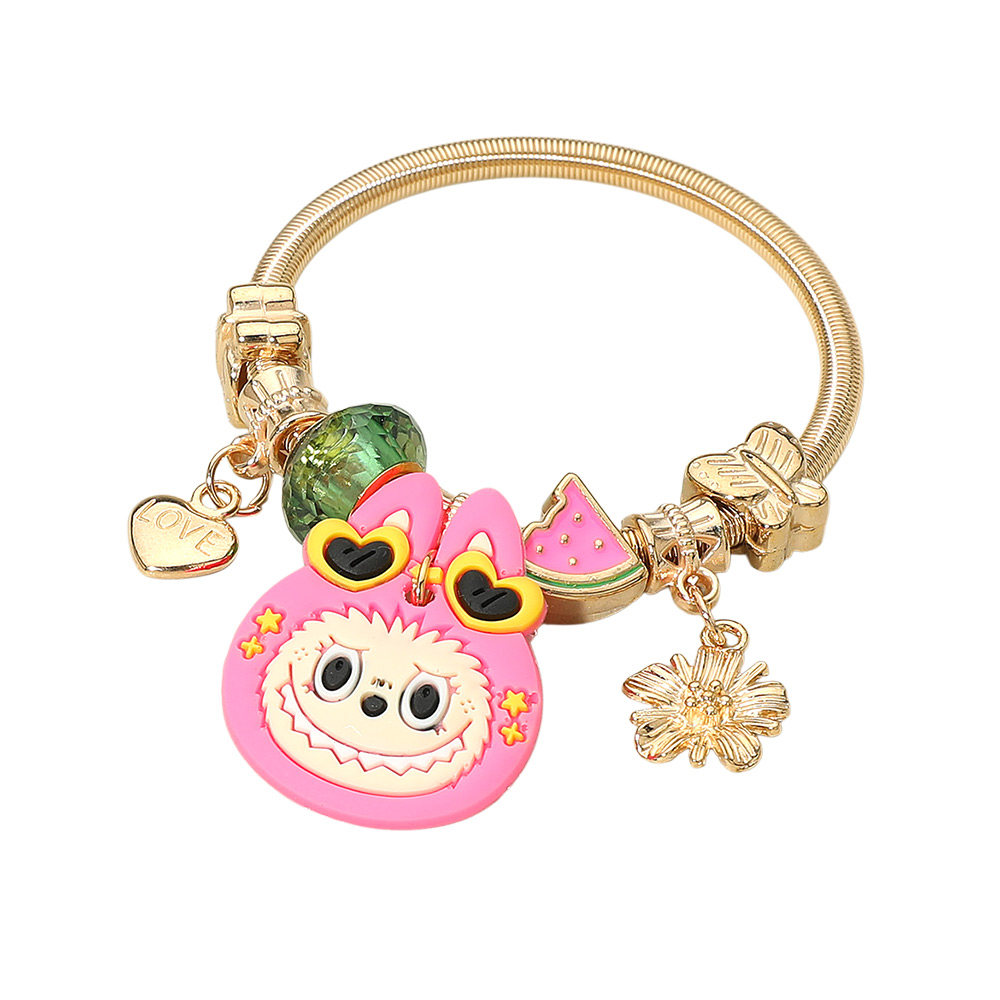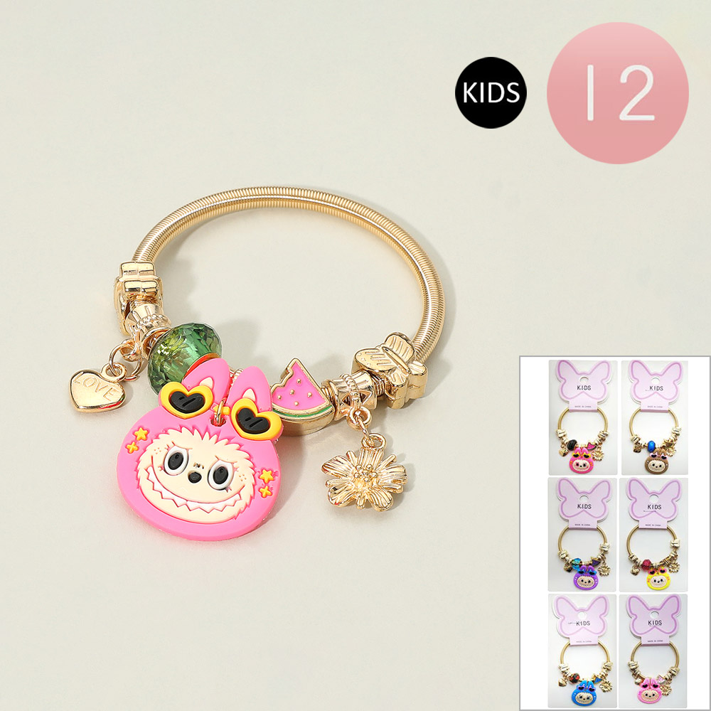 Details • Size : 0.6" H • Charm Size : 1.25" L • Stretchable • Adorable kids charm bracelet featuring a cute character and playful accent charms that add a fun touch to any outfit. Designed with a comfortable fit and eye-catching details, this accessory makes a delightful gift and a cheerful addition to any child’s jewelry collection.