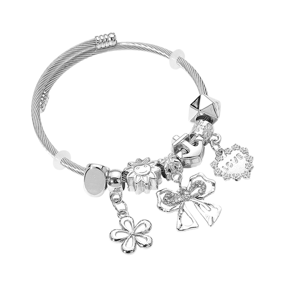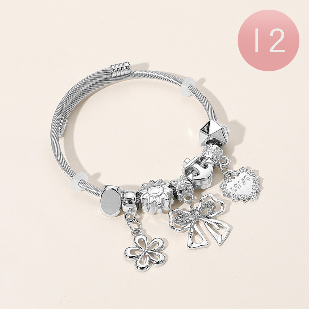 12PCS - LOVE Heart Bow Flower Charm Beaded Adjustable Bracelets