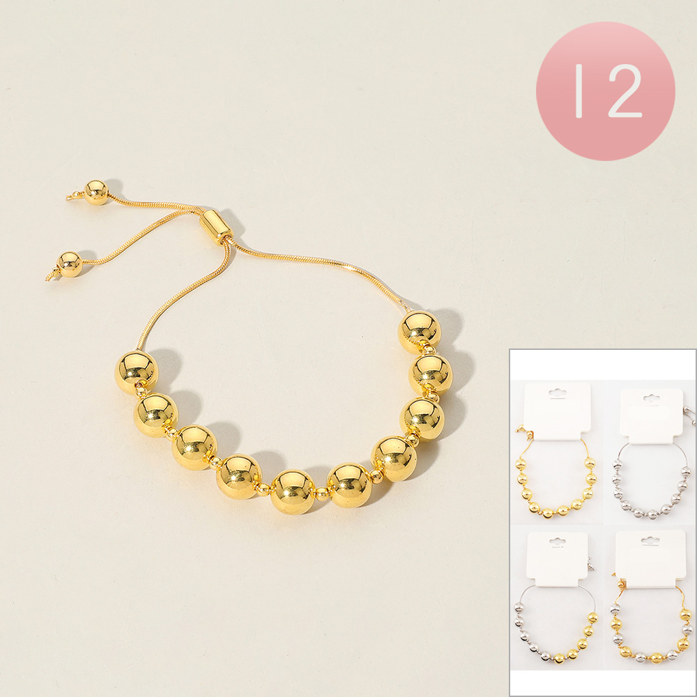 12PCS - Metal Ball Beaded Adjustable Cinch Pull Tie Bracelets