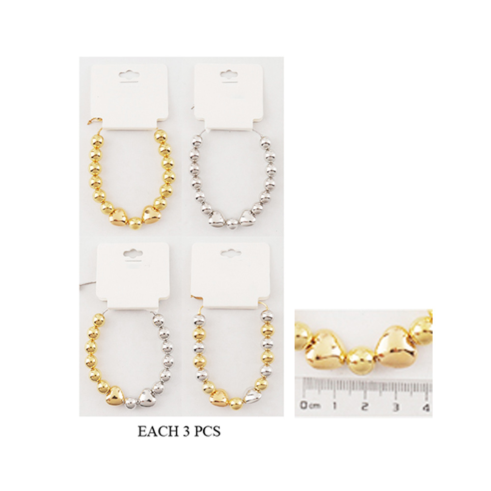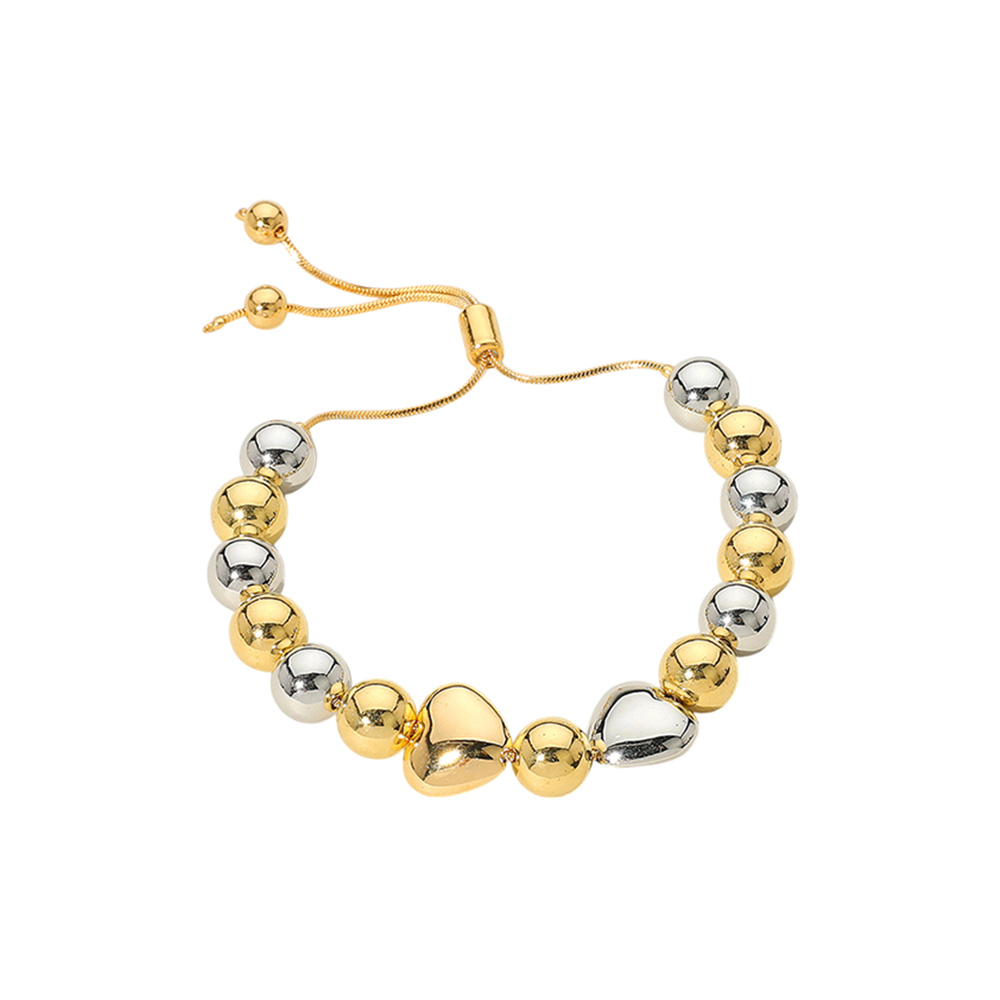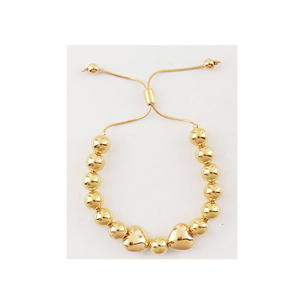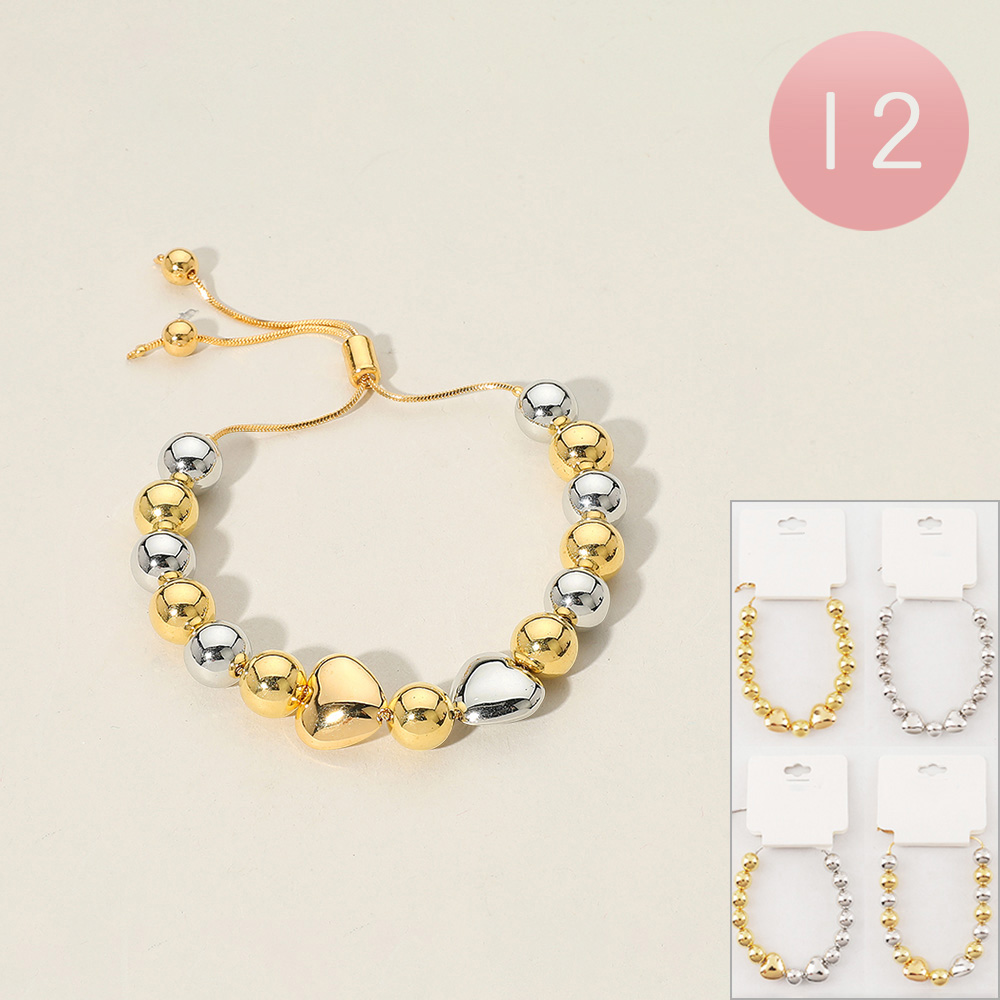 12PCS - Metal Ball Heart Beaded Adjustable Cinch Pull Tie Bracelets