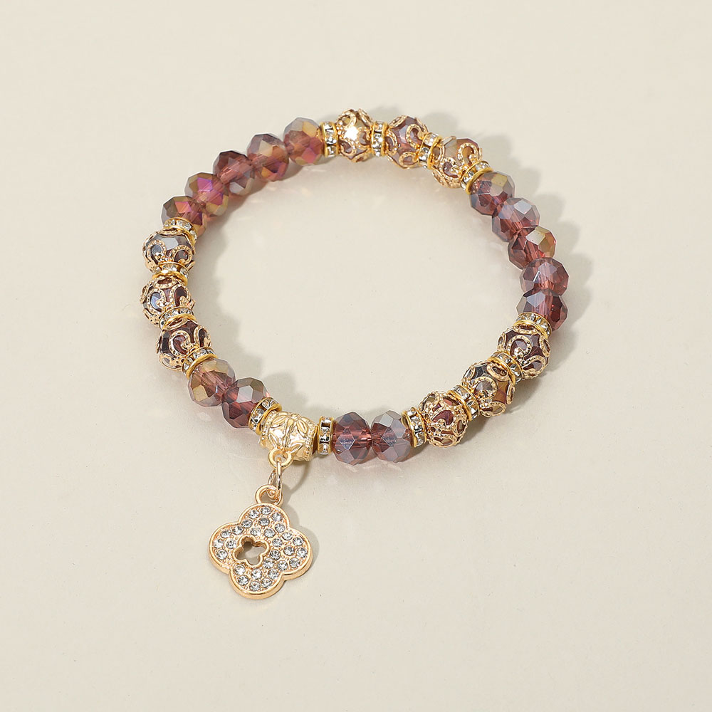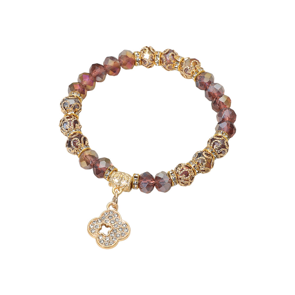 • This faceted bead stretch bracelet features ornate metallic bead accents and a sparkling rhinestone quatrefoil charm for a touch of refined glamour. Designed for easy wear and lasting comfort, it enhances any outfit with its elegant shimmer, perfect for both casual and special occasions.