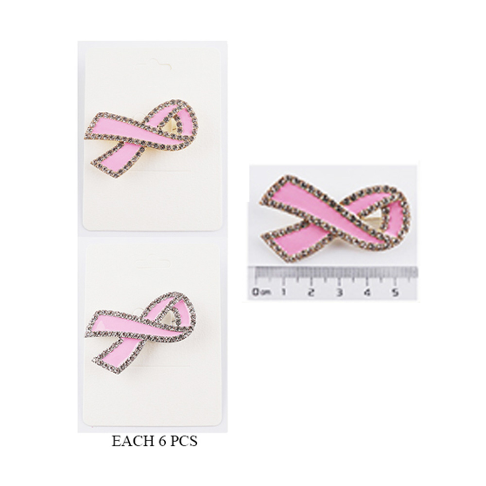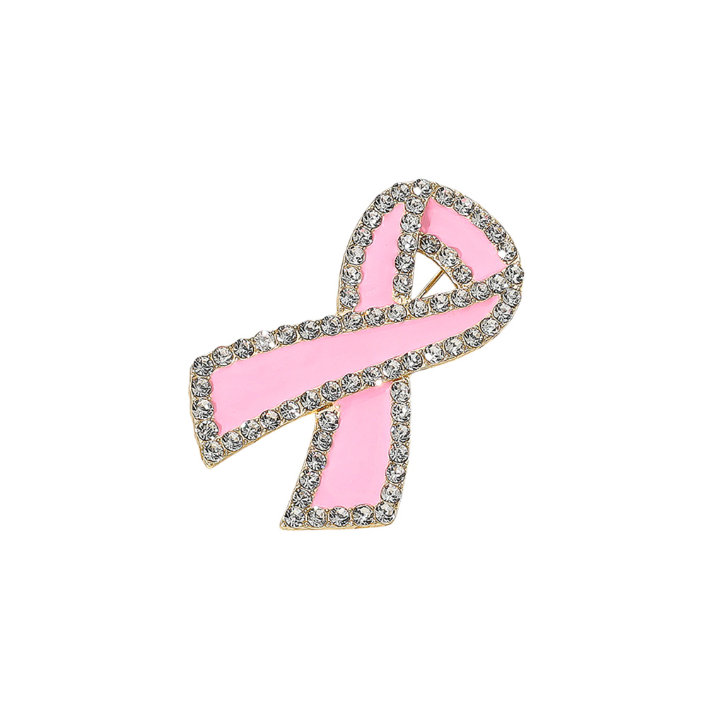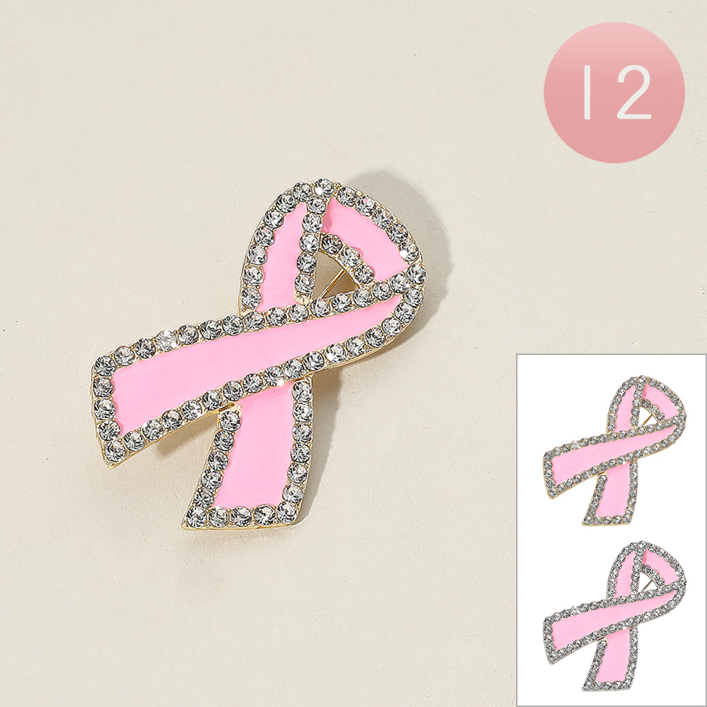 12PCS - Stone Paved Rim Enamel Pink Ribbon Pin Brooches