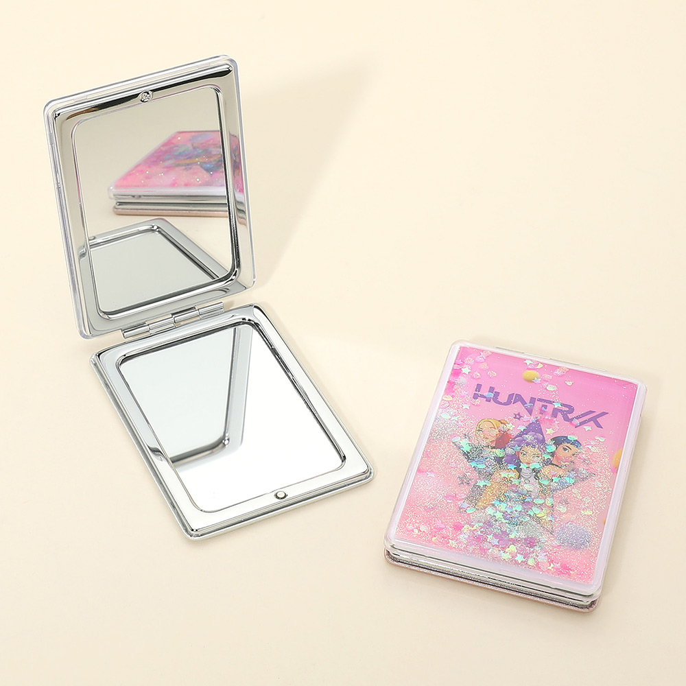• Stylish compact mirror featuring K-Pop Demon Hunters character artwork with a decorative floating glitter design. Ideal for quick touch ups at home or on the go, this slim folding mirror fits easily in bags or pockets and makes a fun, collectible accessory for fans and everyday use.