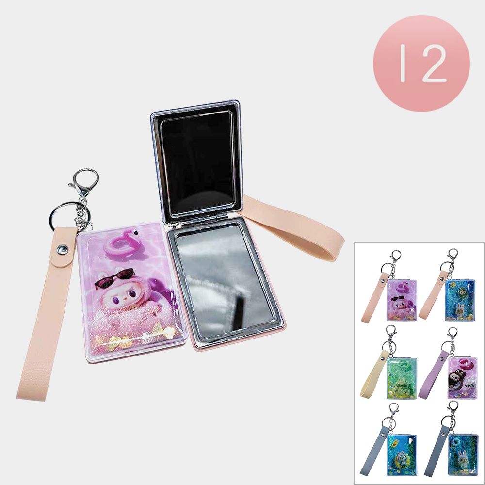 Details • Size : 2.4" X 3.25" • Strap Size : 4" L • 2 In 1 - Plain Mirror And Magnifying Mirror • Playful monster bunny character compact mirror keychain with dual mirrors, secure clasp, and handy wrist strap for quick touch-ups anywhere. Perfect for gifts, party favors, travel kits, or adding a fun, practical accessory to keys, purses, backpacks, and cosmetic bags.