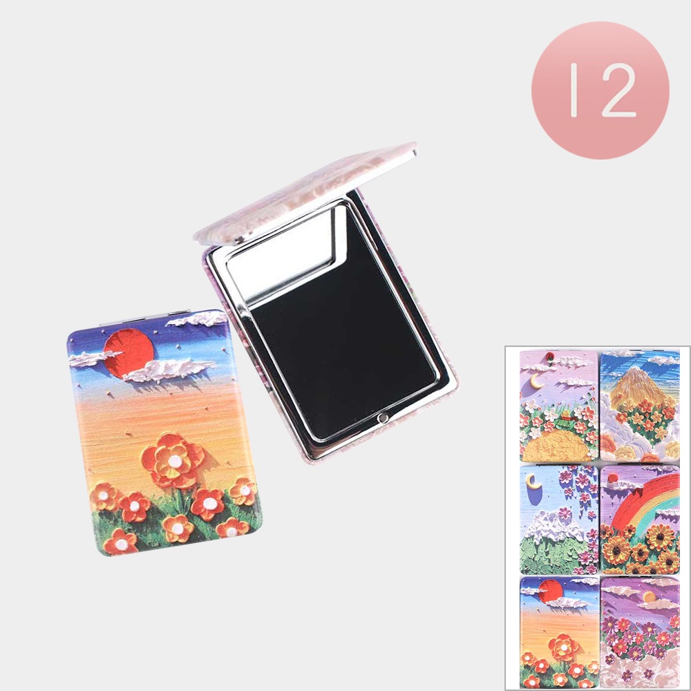 12PCS - Floral Landscape Printed Cosmetic Mirrors