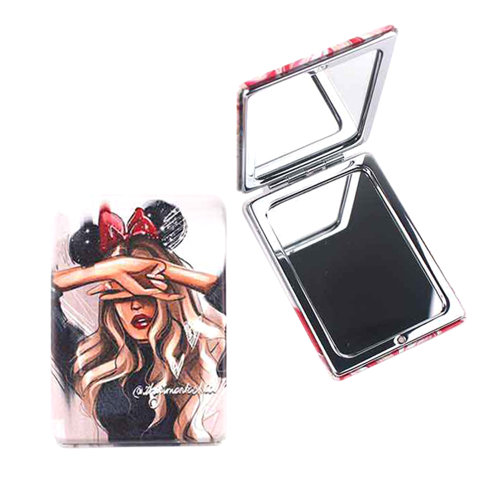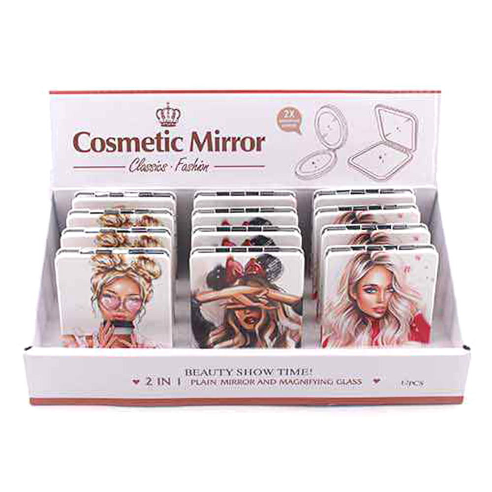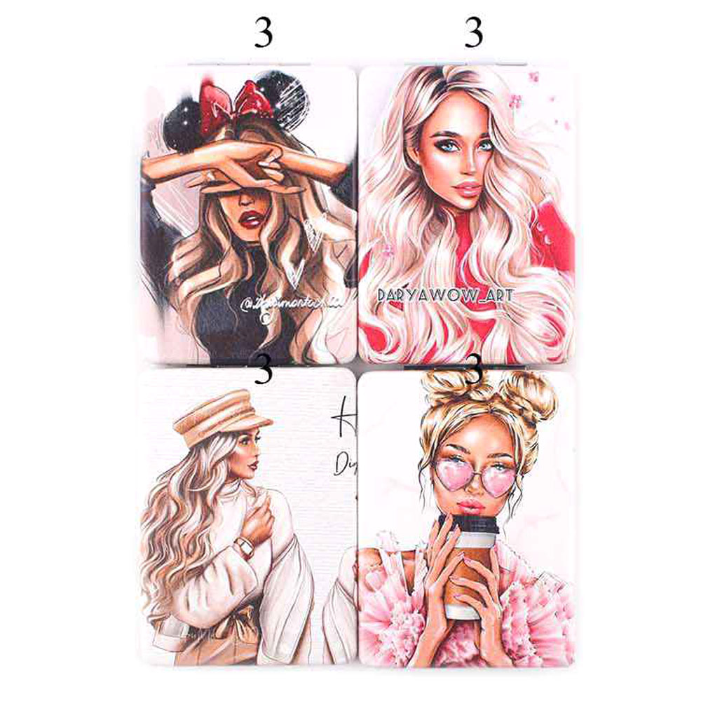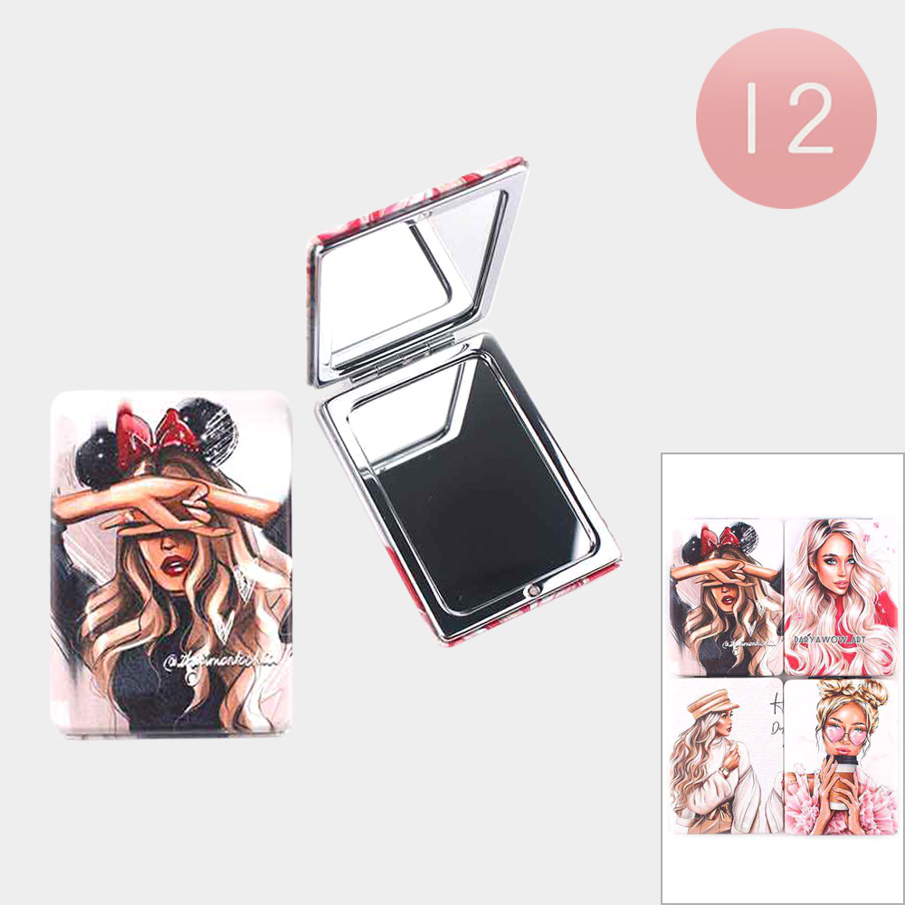 Details • Size : 2.4" X 3.3" • 2 In 1 - Plain Mirror And Magnifying Mirror • Cute and compact folding mirror featuring trendy illustrated girl designs, perfect for quick touch-ups on the go. Slim, lightweight, and easy to slip into any purse or makeup bag. Includes assorted fashionable styles and dual mirrors for clear, convenient viewing anytime.