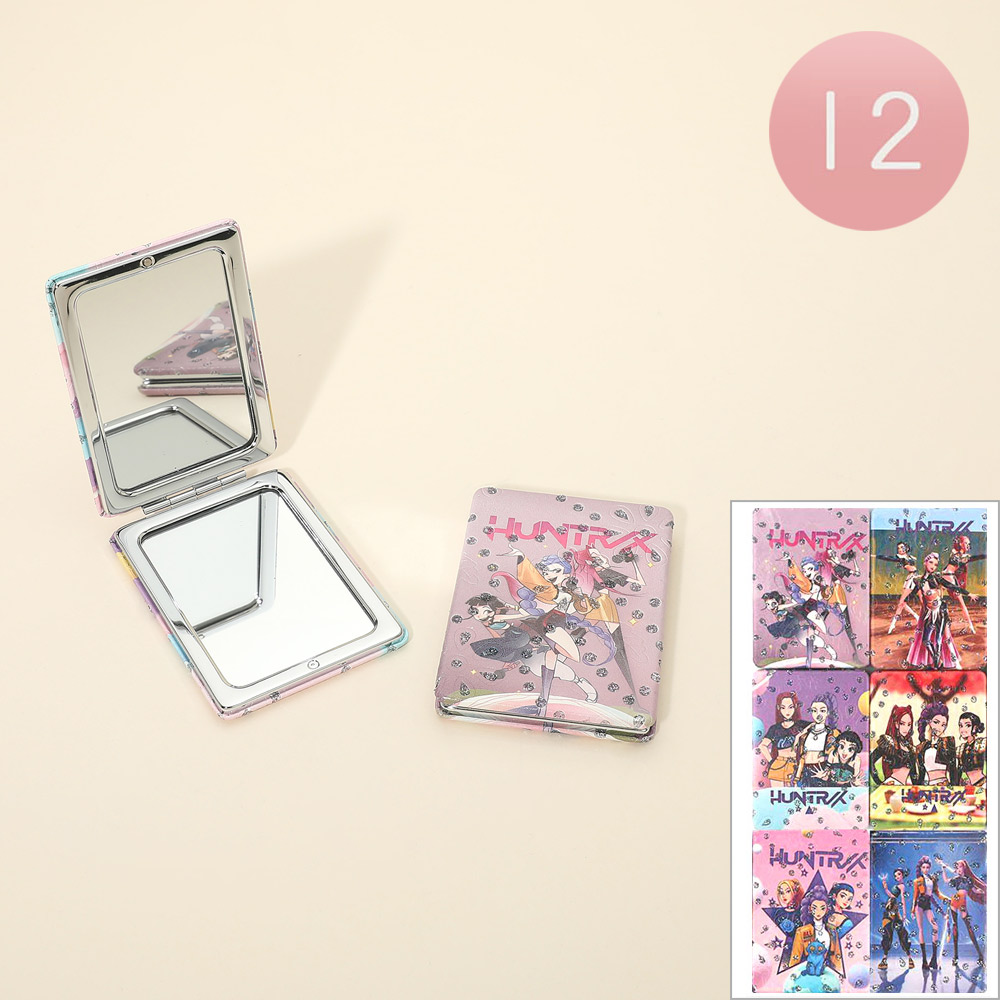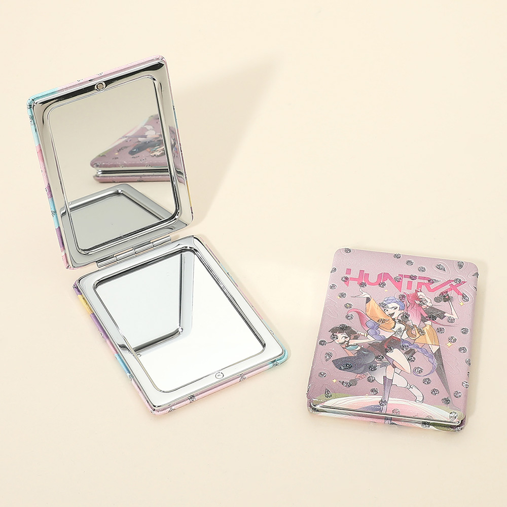 Details • Size : 2.4" X 3.3" • 2 In 1 - Plain Mirror And Magnifying Mirror • Fan inspired compact mirror featuring K-Pop Demon Hunters character artwork. Designed for quick touch ups at home or on the go, this slim folding mirror fits easily in bags or pockets. A practical and collectible accessory perfect for daily use, travel, gifting, or pop culture fans.