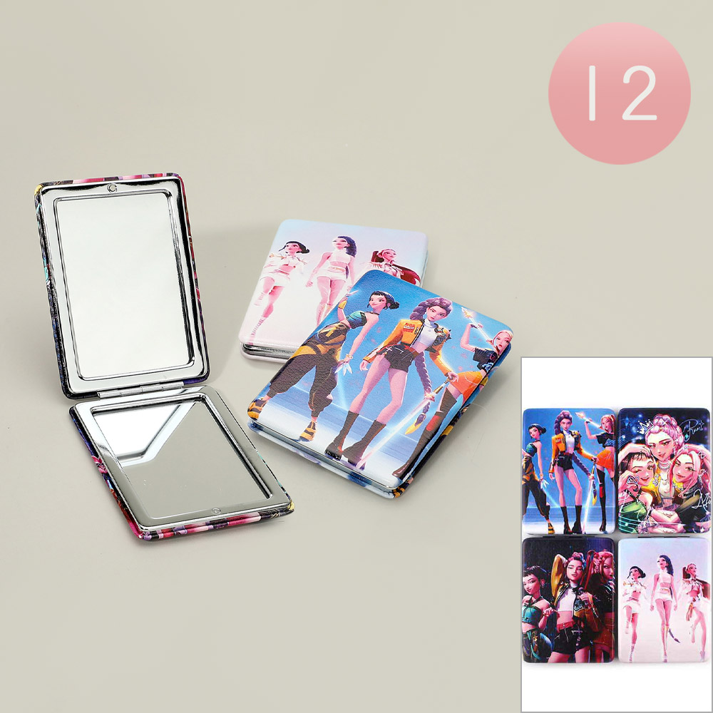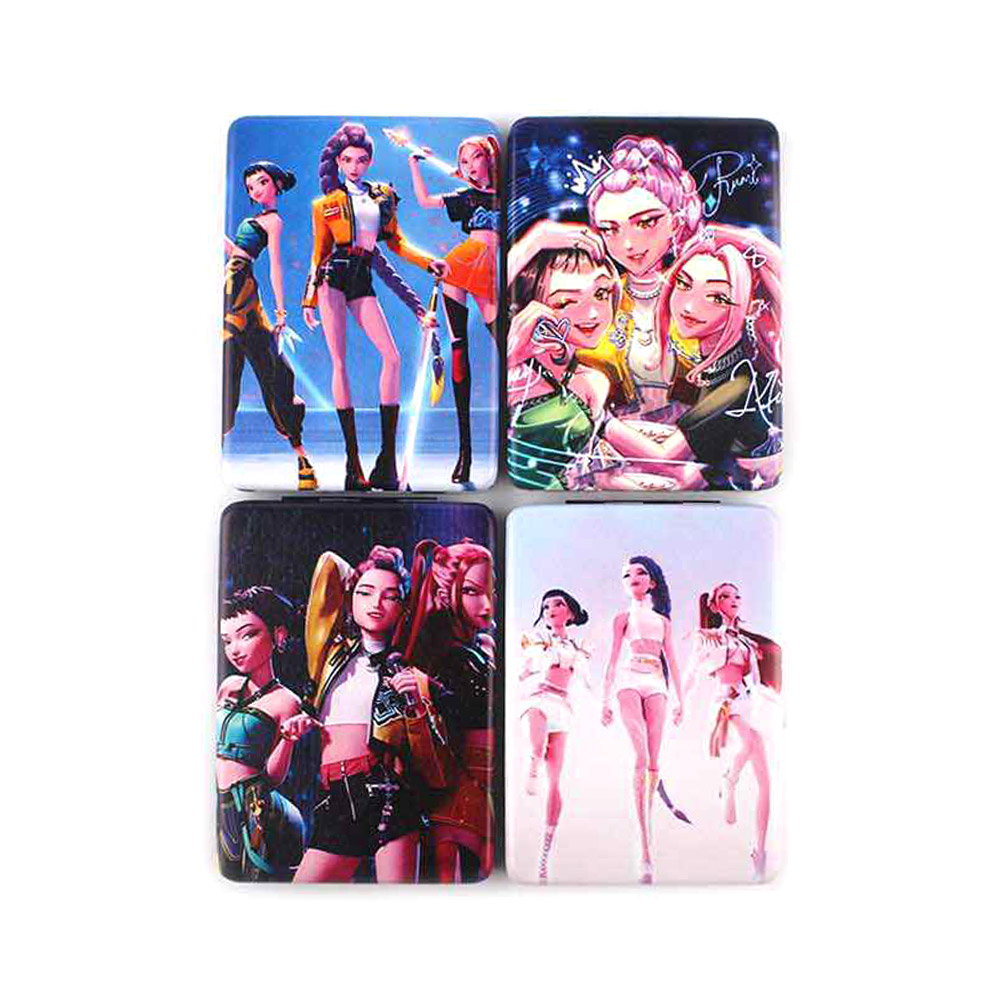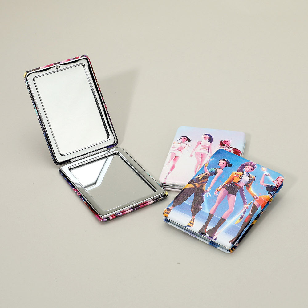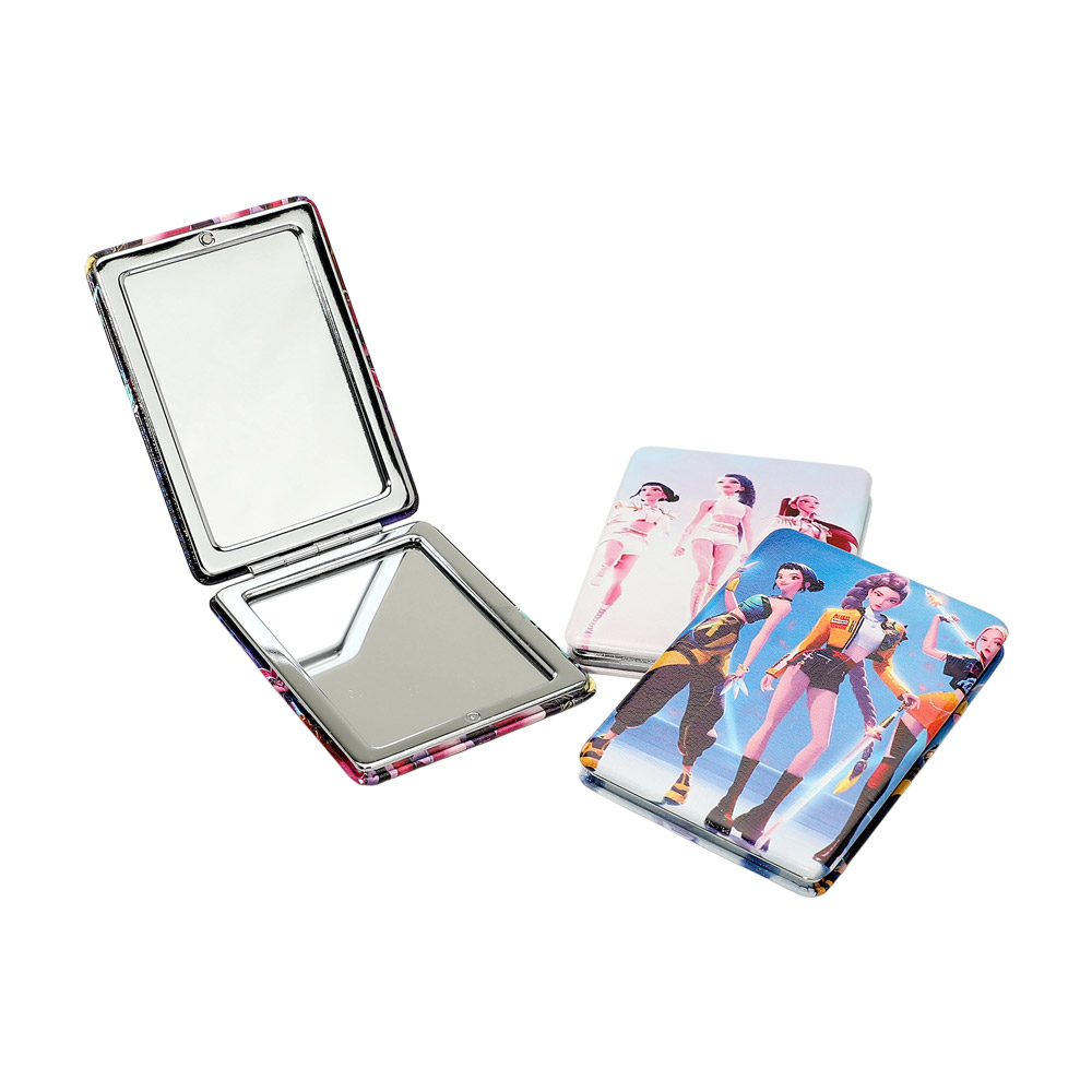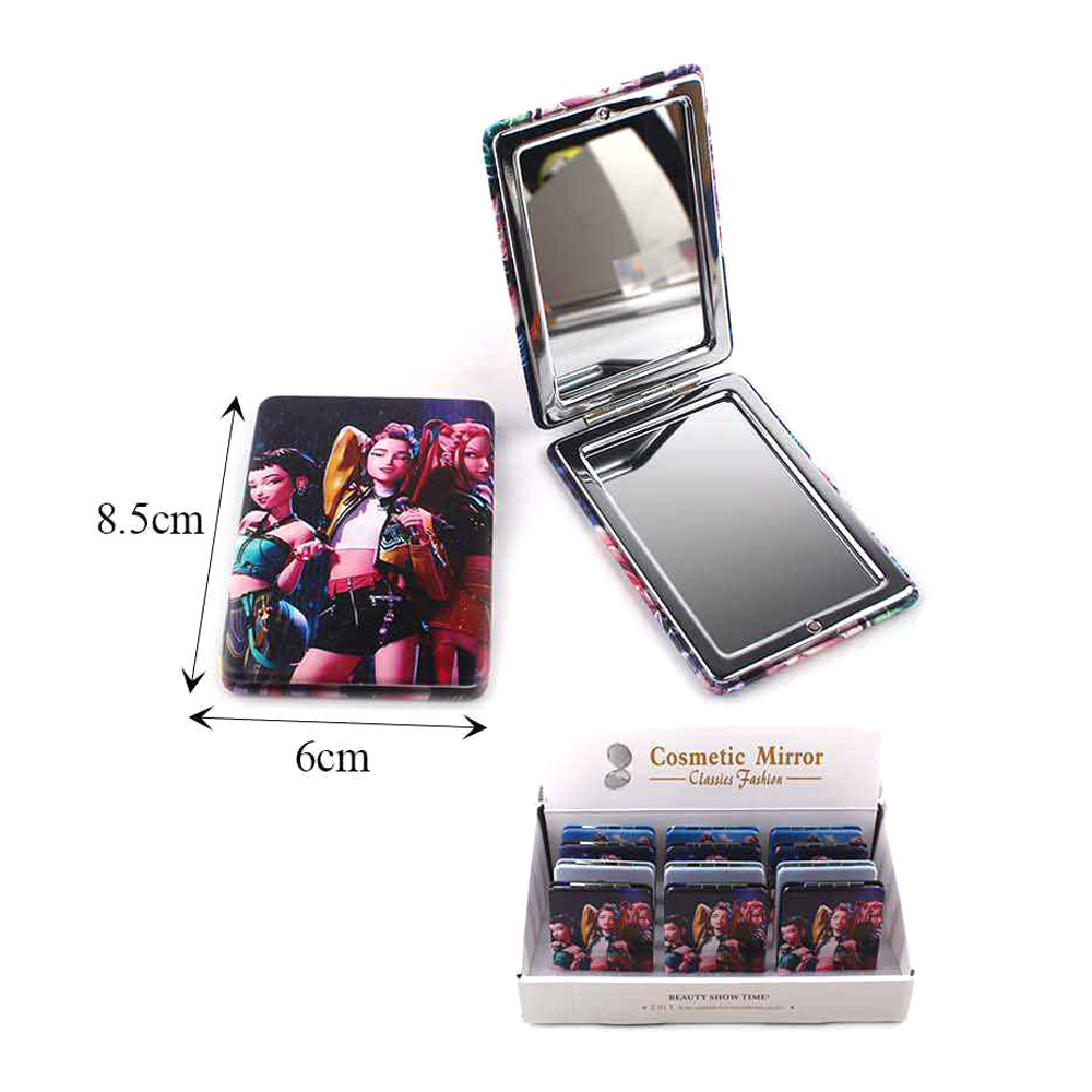 Details • Size : 2.4" X 3.3" • 2 In 1 - Plain Mirror And Magnifying Mirror • Kpop demon hunters HUNTRIX character printed compact pocket mirror featuring bold illustrated figures and a slim folding design for everyday touch-ups. This portable accessory offers clear reflection and visual appeal, making it ideal for gift shops, trend-focused displays, pop culture collections, and impulse-buy assortments with a fun, modern vibe.