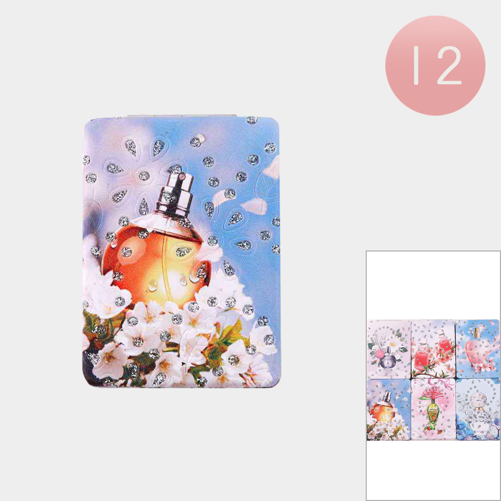 12PCS - Perfume Bottle Flower Printed Cosmetic Mirrors