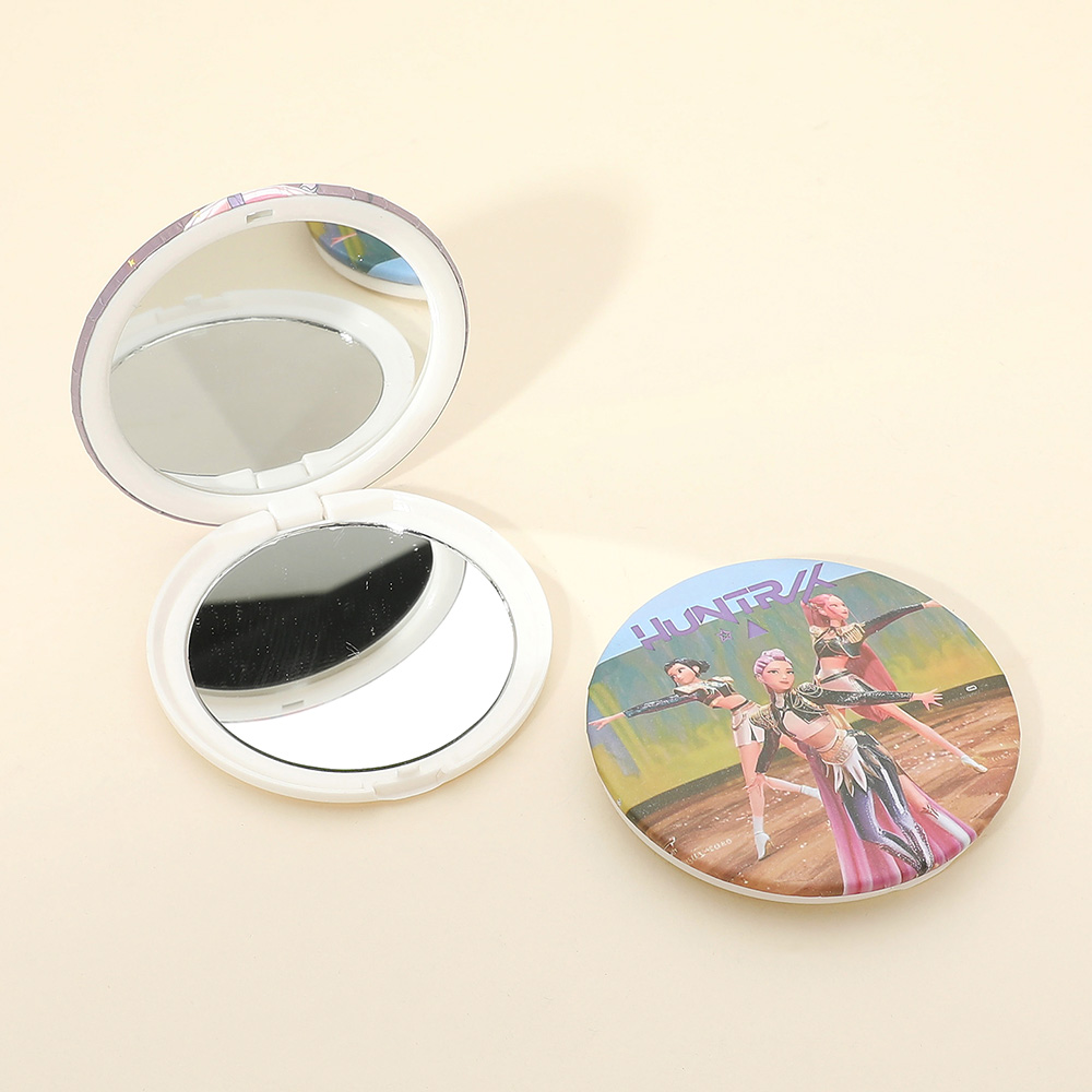 Details • Size : 2.9" X 2.9" • 2 In 1 - Plain Mirror And Magnifying Mirror • Fan inspired round compact mirror featuring K-Pop Demon Hunters character artwork. Designed for quick touch ups at home or on the go, this portable mirror fits easily in bags or purses. A practical everyday accessory that combines function with collectible pop culture style for fans and gifting.